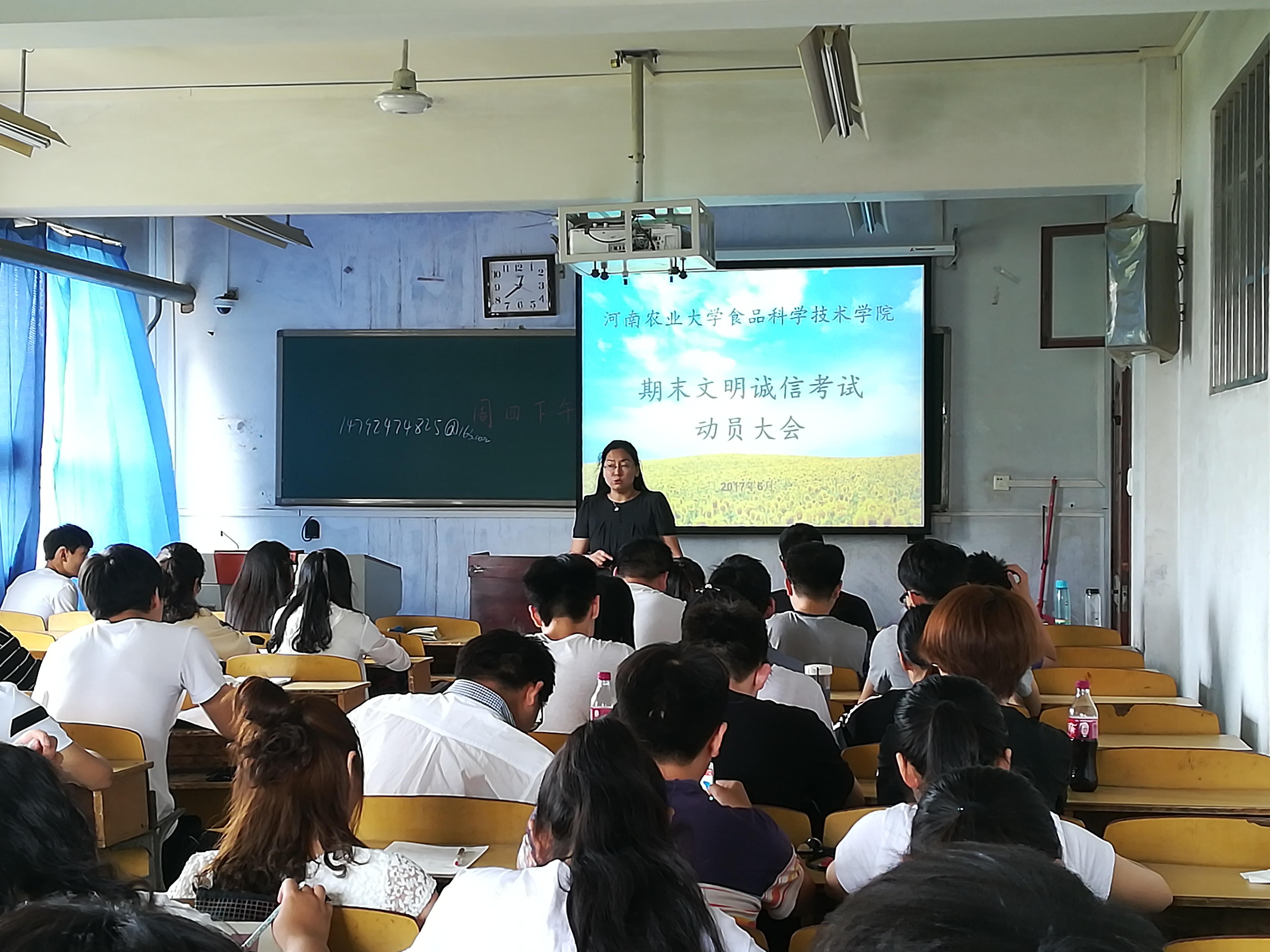 在文化路校区三号楼501教室召开期末文明诚信考试动员大会。院团委书记李蓓蓓,院党委组织员张世昌出席会议,学院全体学生干部参加会议。