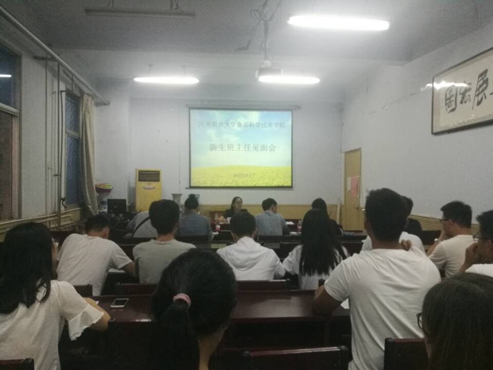 在文化路校区一号楼报告厅召开新生班主任见面会,院团委书记李蓓蓓、新生班主任出席会议,2017级军训部全体成员参加会议。