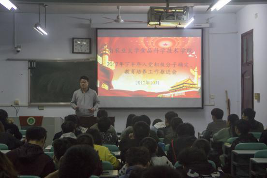 在文化路校区三号楼301教室召开2017年下半年发展对象确定考察暨预备党员接受工作推进会。学院副科级党委组织员张世昌主持会议。学院全体班长支书参加会议。