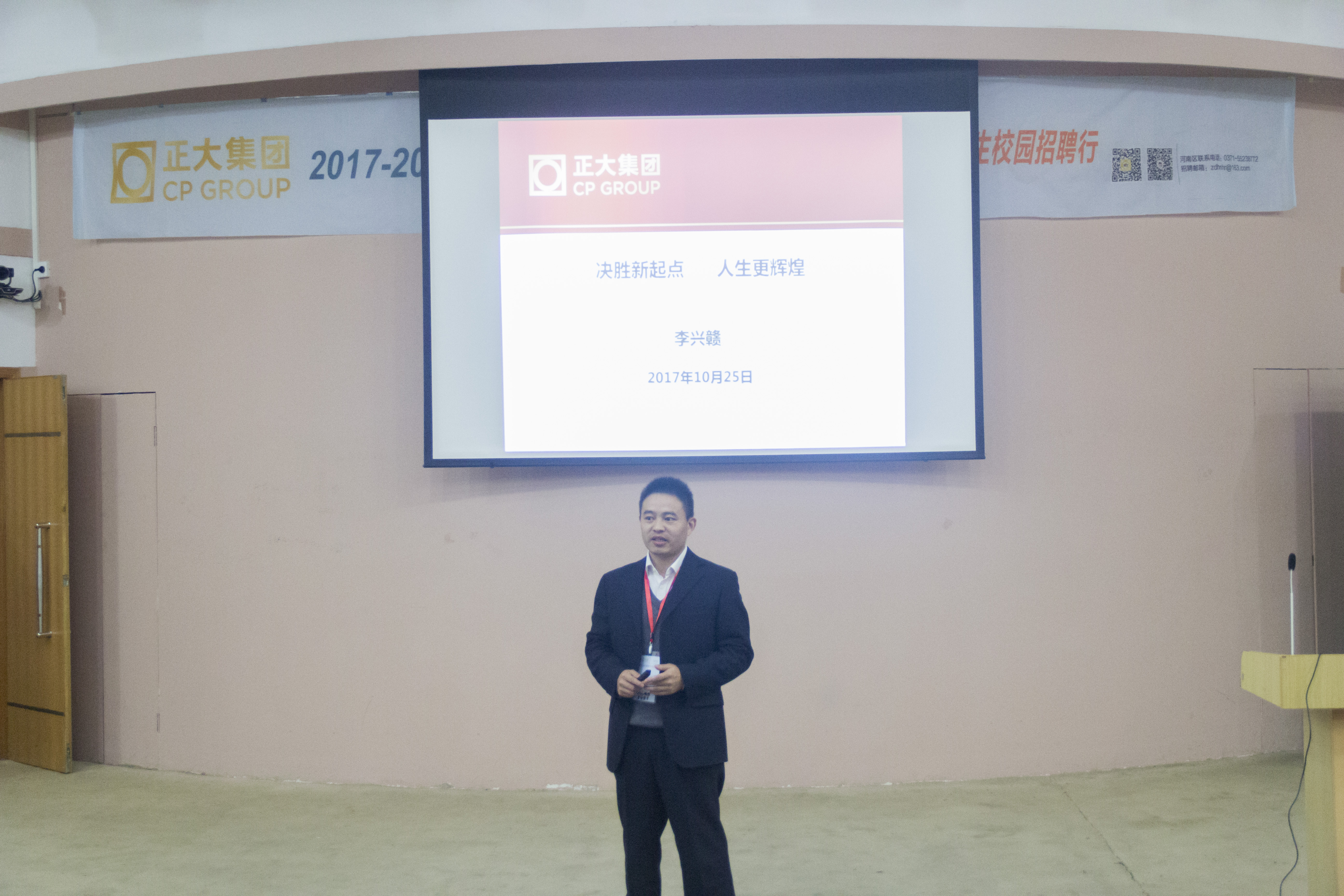 会议伊始,首先由正大集团人力资源部总监为在场的学生讲述大学生就业问题,讲到当前大学生就业形势以及作为应届毕业生就业时的优势和劣势。随后,由正大集团招聘会负责人向在场的学生放映集团宣传片,展示了正大集团“做世界的厨房,人类能源的供应者”的企业愿望、“利国、利民、利企业”的价值观,以及坚持“理解人、尊重人、依靠人、凝聚人、培养人、以人为中心重视每一位员工的创造性,提高每位员工的责任心”的人才理念。接着,负责人以PPT的形式就集团的农牧食品产业价值链、薪酬福利、培训发展以及招聘岗位等几个方面想同学们做了简单介绍,展现了正大集团的组织架构以及工作内容,表明了正大集团对人才的重视以及招纳贤才的决心。最后,负责人解答了同学们提出的疑问。