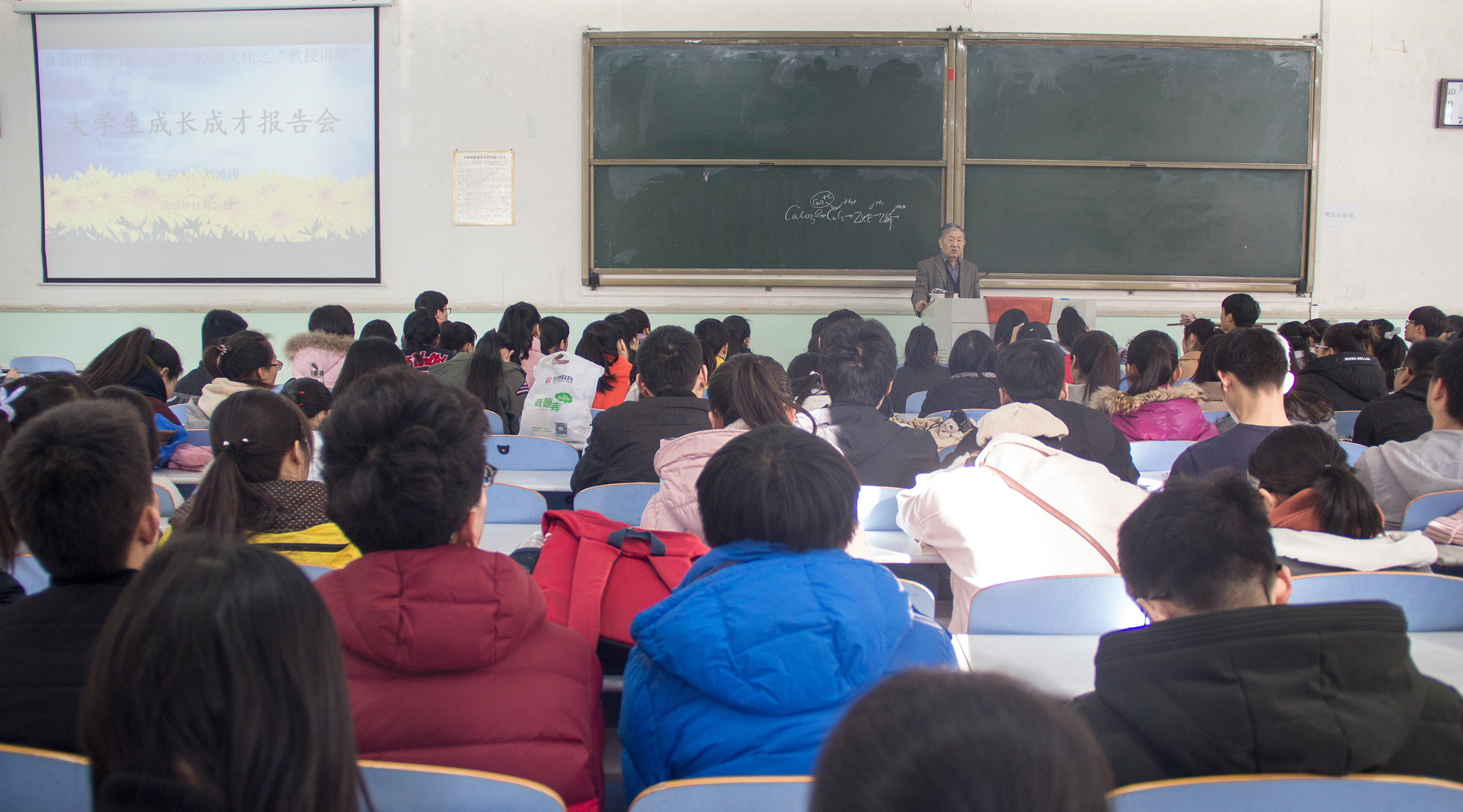 在文化路校区工程楼101教室举办“教授讲堂”之大学生成长成才报告会,学校教学督导、关心下一代工作委员会委员刘波涛教授应邀出席,为食品学院青年学生作报告。学院2017级各班学生代表参加了此次报告会。