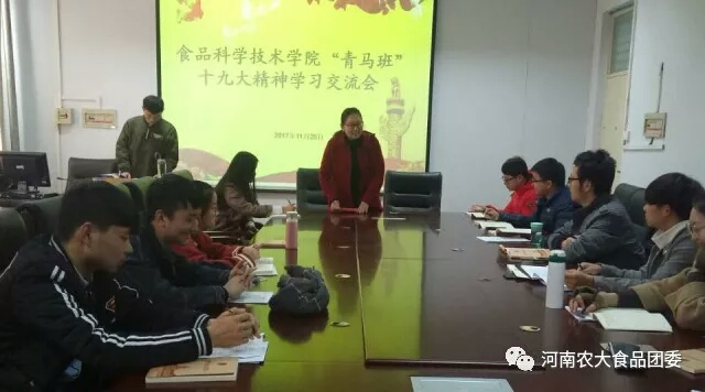 在文化路校区17号楼405会议室召开“青马班”党的十九大精神学习交流会。院团委书记李蓓蓓出席会议,全体青马班成员参加会议。