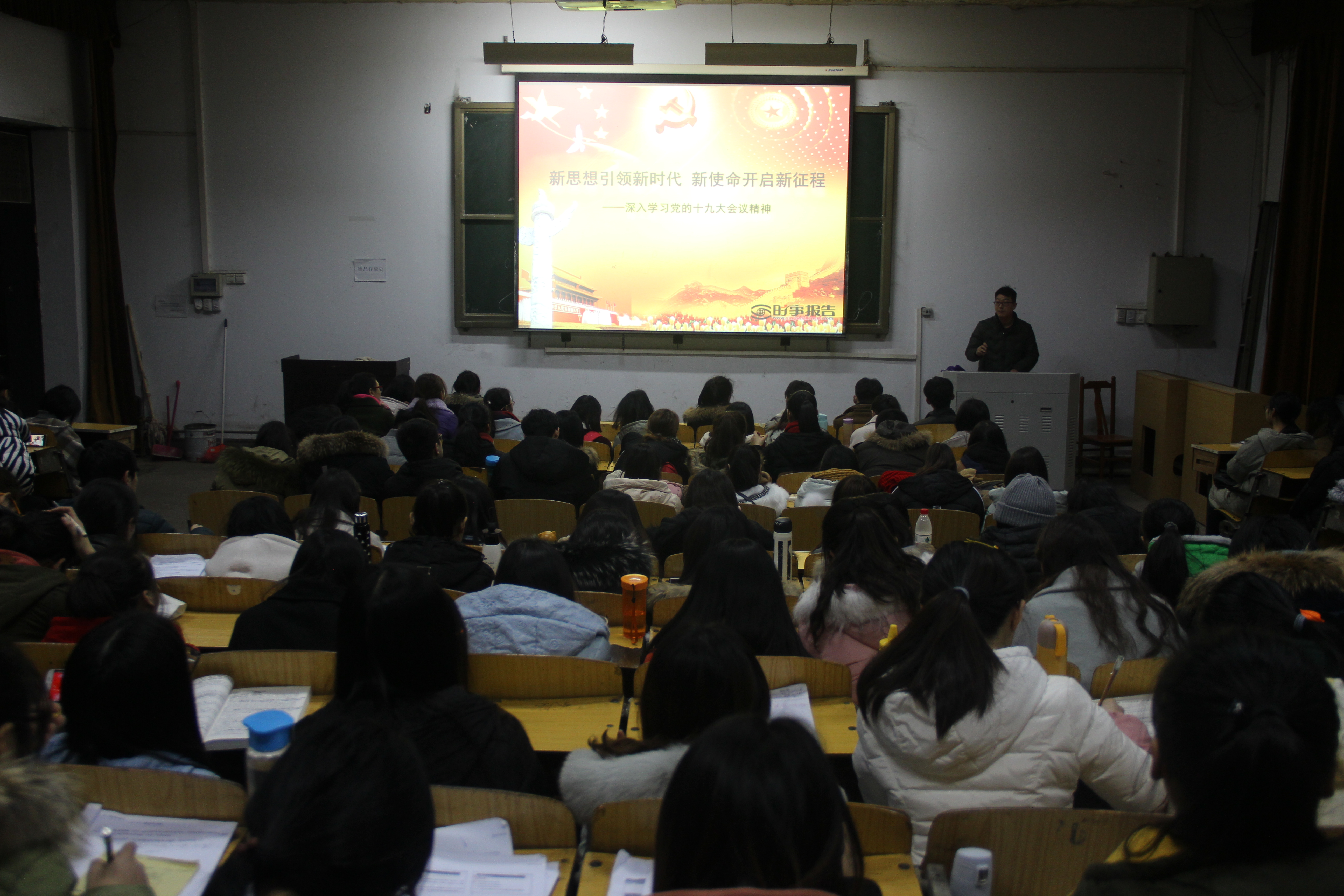 于12月21日在文化路校区电教厅举行“政工干部党的十九大巡讲”活动,院副科级党委组织员张世昌出席本次活动,15级全体学生参加活动。