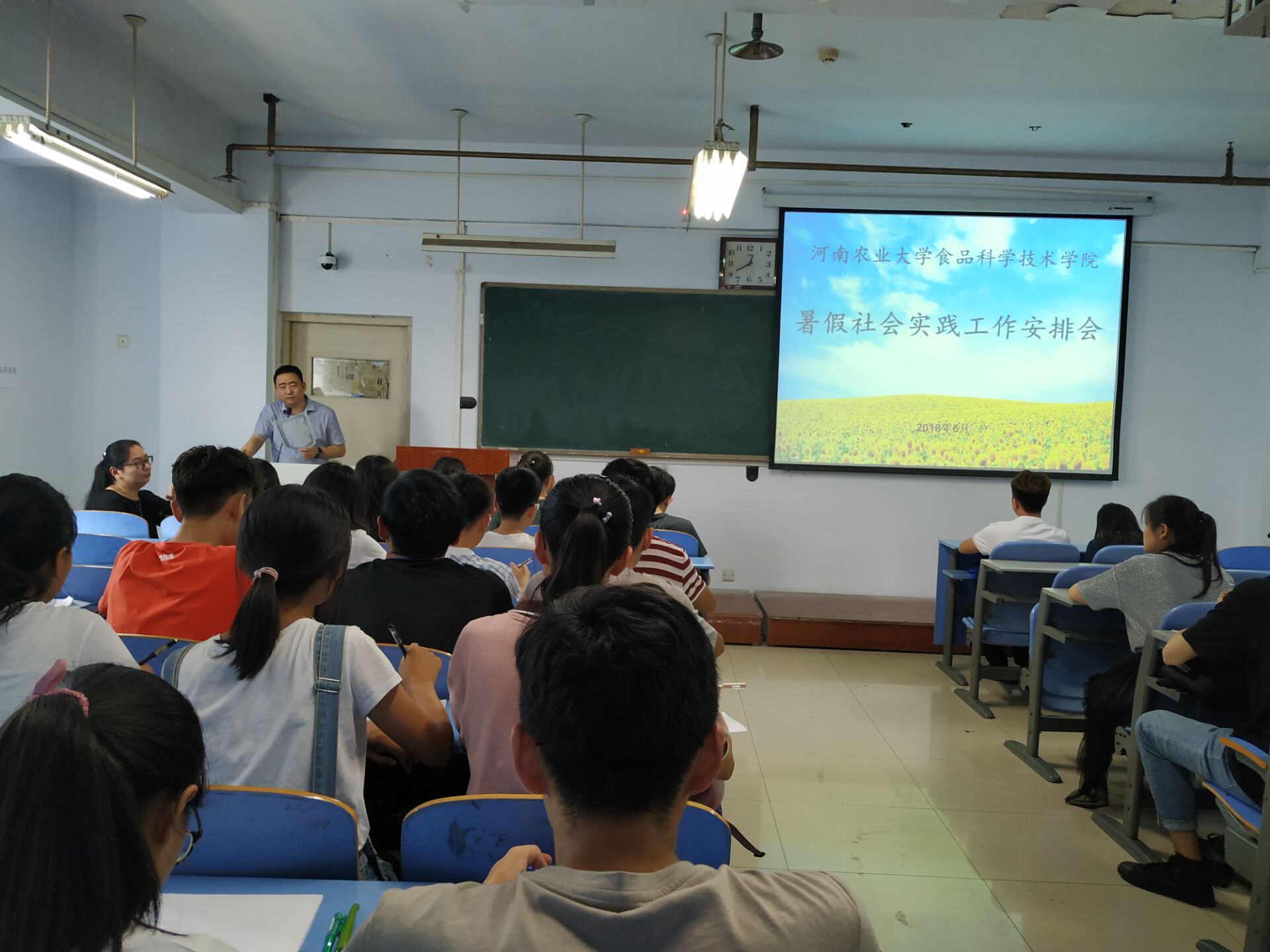 会议伊始,杨光介绍了暑期社会实践的活动内容,并简单描述了有关注意事项。随后,他详细讲解了有关暑期社会实践“三下乡”活动团队方向,其中包含国情社情观察团、文化艺术服务团、美丽中国实践团等十个团队类别。李蓓蓓指出,社会实践为教学环节中“实践育人”环节,这个环节十分重要,不可缺少。并告诉同学们在社会实践过程中要结合自身特点和家乡情况,本着受教育,长才干,做贡献的目的,实行就进就便原则。接着,李蓓蓓通过举例分析各实践团队的内容,给予同学们有关社会实践内容相关建议,最后,李蓓蓓再次强调了报名时间,并希望同学们按时做好暑期社会实践报名工作,保证暑期社会实践活动顺利进行。
