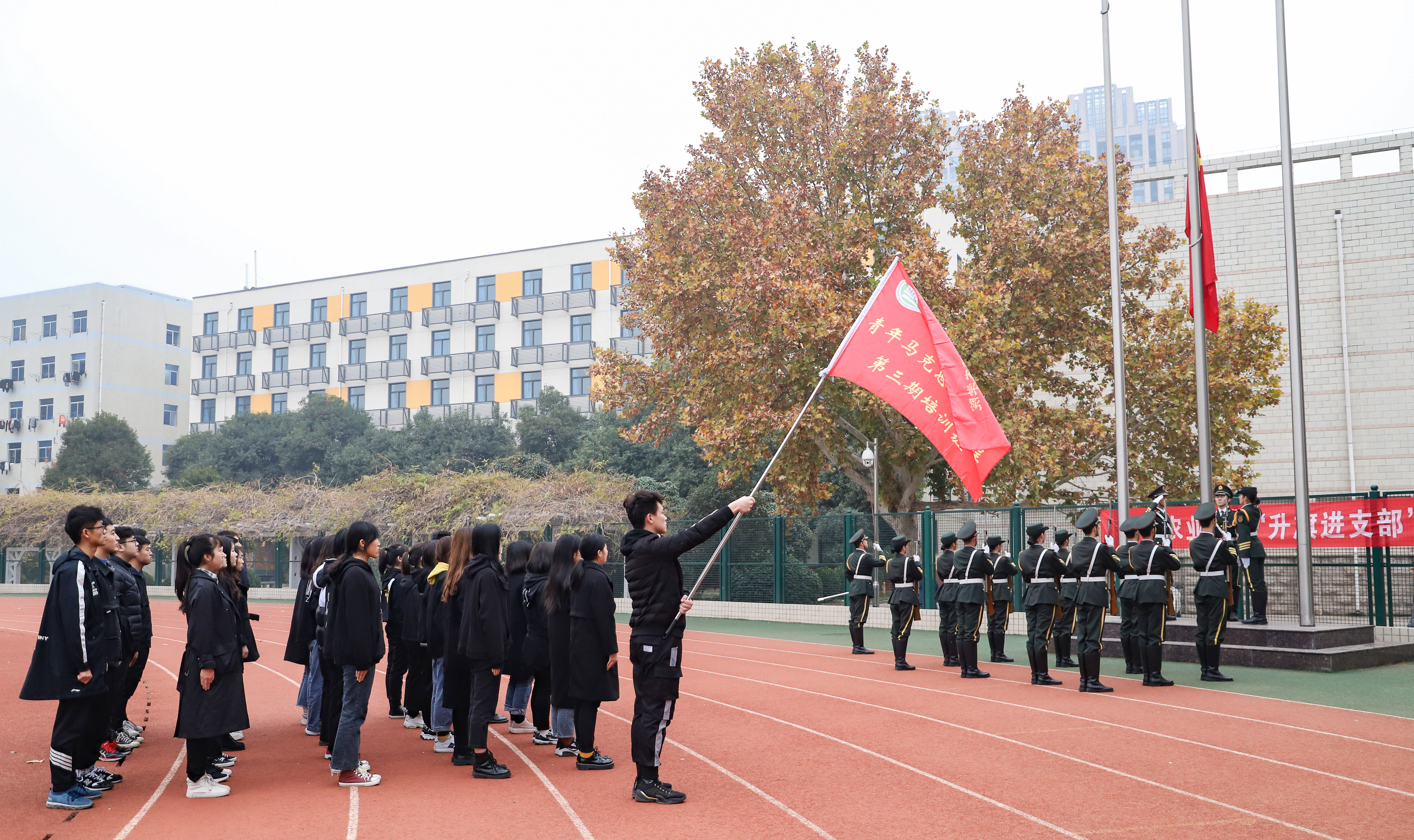 为弘扬爱国主义精神,充分发挥青马班成员的模范带头作用。11月23日早晨,全体青马班成员在操场上观礼了升旗仪式。