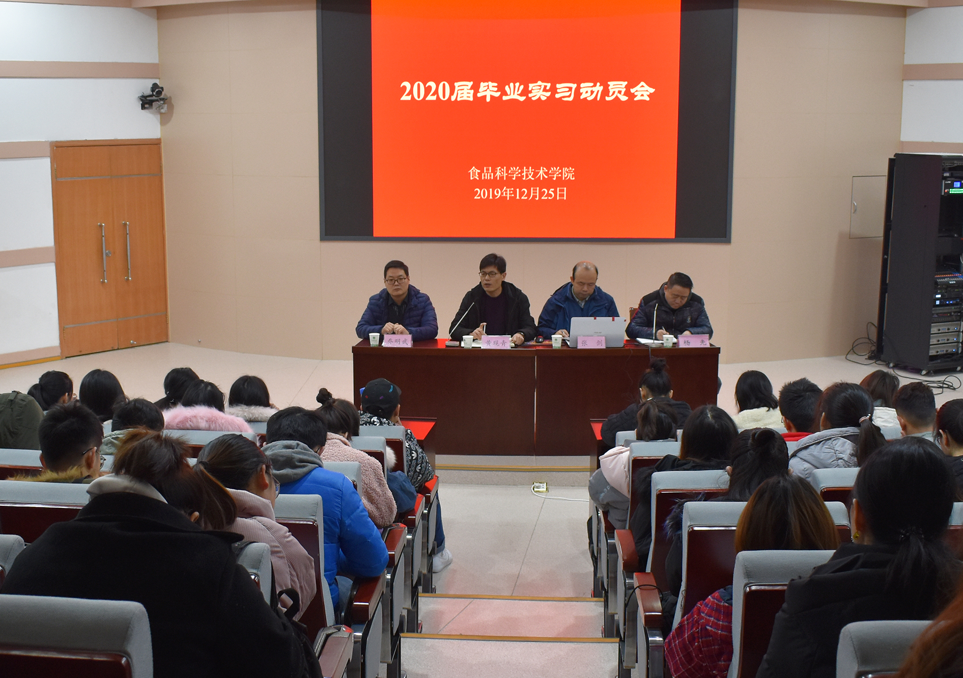 于文化路校区三百人报告厅召开2020届毕业生实习动员会。副院长黄现青、院教学秘书张剑、实验室中心副主任乔明武、院团委副书记杨光出席会议,16级全体学生参加会议。