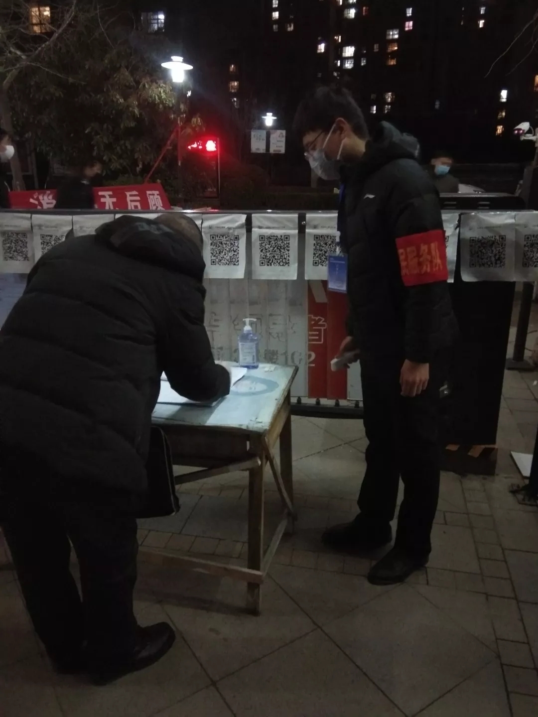 2012级学子卜大品从大年初三开始坚守防控一线。每天排查居民信息,把控人员进出,监测重点观察户,引导居民减少户外活动。一天未休,但他始终保持严谨的工作态度,把控人员流动,服务居民生活。“隔离疫情不阻断爱”,他主动邀请附近便利店和大型商超加入小区微信群,一袋袋充满温情的商品通过小区栅栏传递到居民手里。群众也送来口罩与热水,疫情中的温情时刻鼓励着他,他坚信“摧伤虽多意愈厉,直与天地争春回”,大家齐心,共战疫情,终将迎来春回大地!