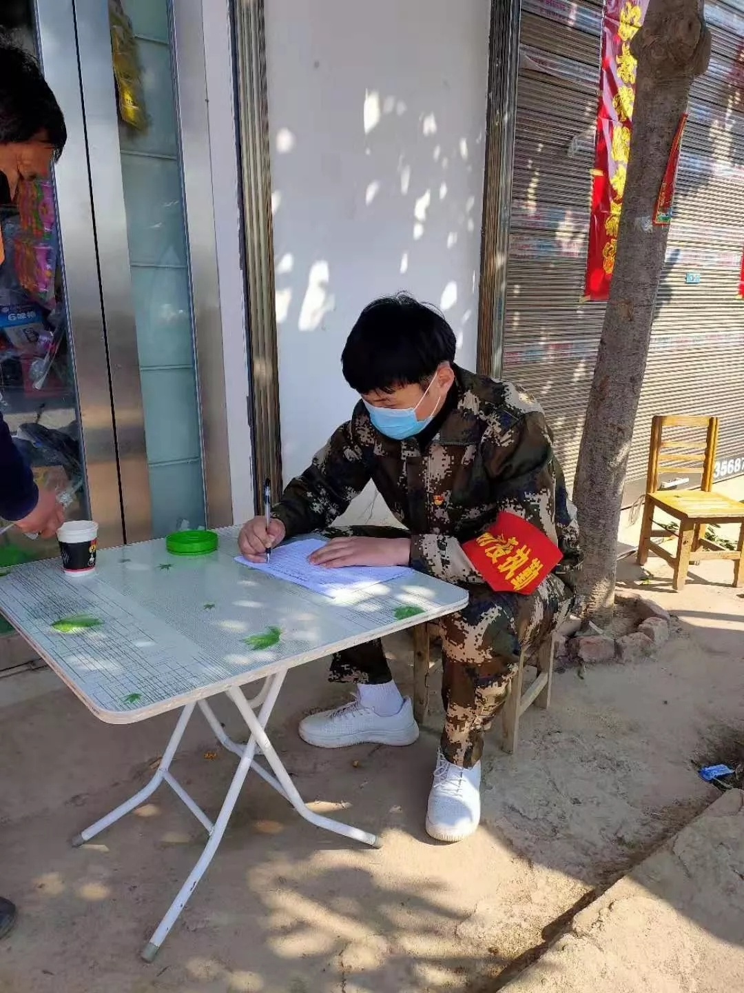 2015级学子李达主动加入安徽省阜阳市太和县税镇镇陶寨行政村前坡的疫情防控队伍,主要工作是定点劝返无故进出村的村民以及流动劝返在马路上聚集的村民。李达认为作为一名学生党员,有责任、有义务去奉献自己的一份力量,同时也希望带动更多的党员、团员以身作则,在保护好自身的前提下主动投身到疫情防控一线去,争取早日打赢这场疫情狙击战!