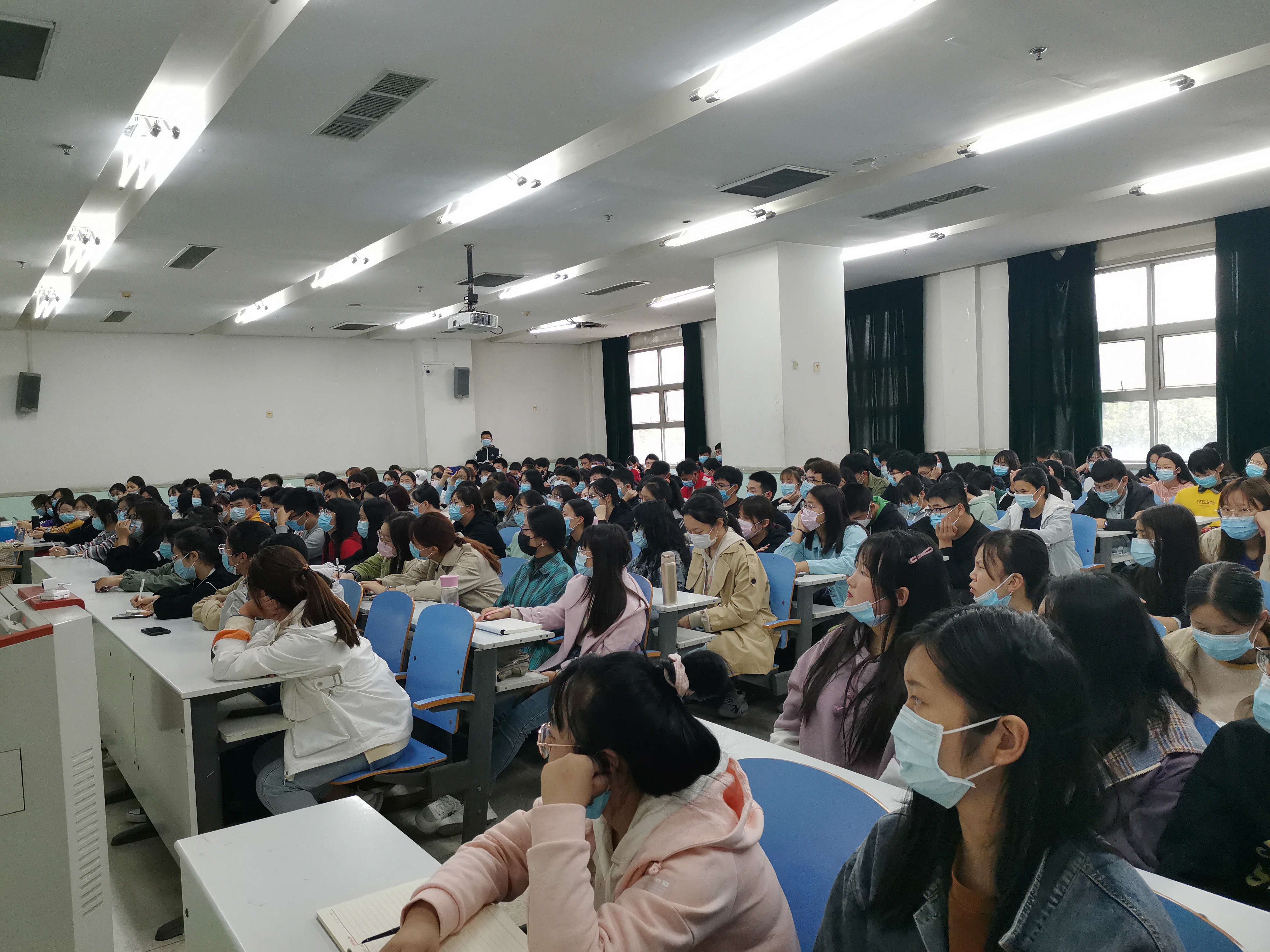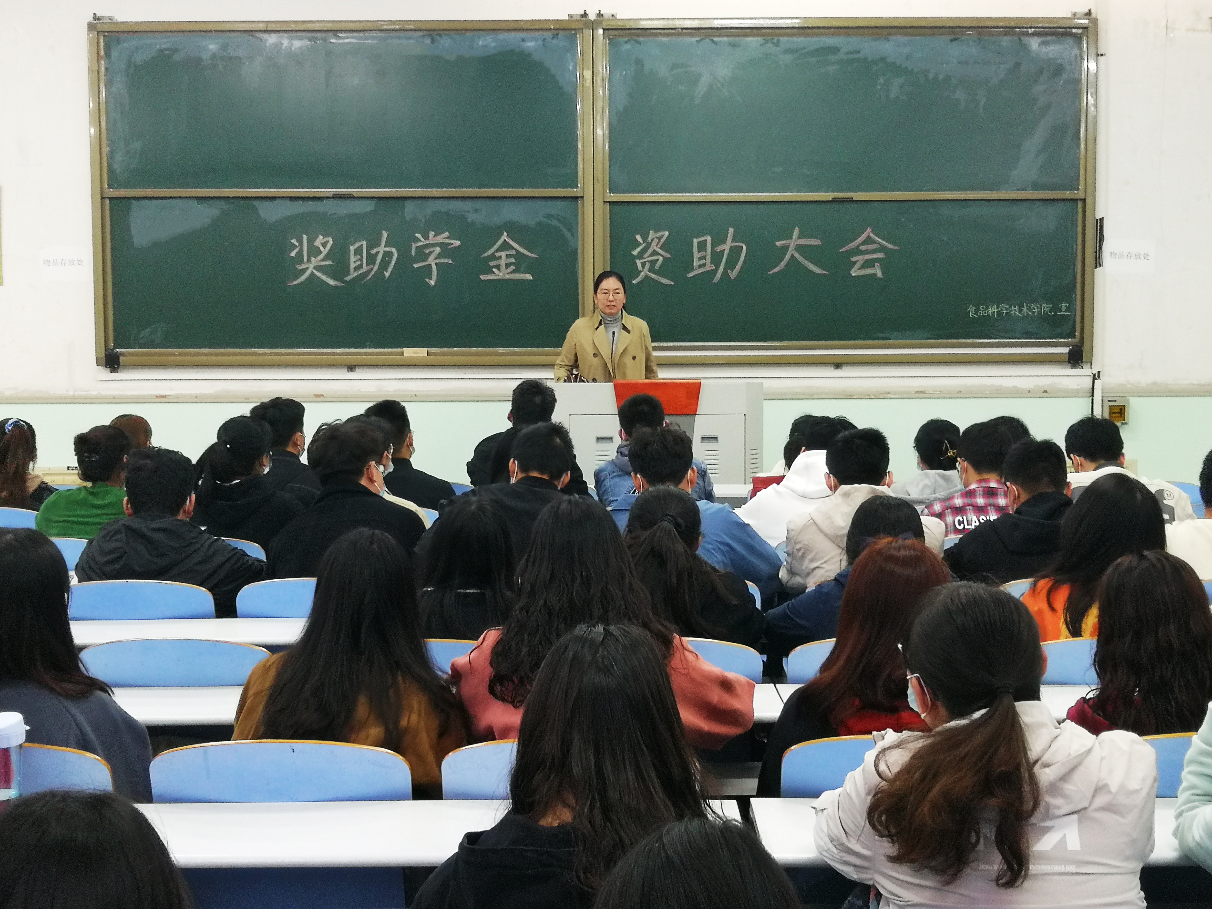 于文化路校区工程楼101、302教室召开奖助学金工作会议。院团委书记李蓓蓓、院辅导员黄姗姗出席会议,17级、18级、19级全体学生参加会议。