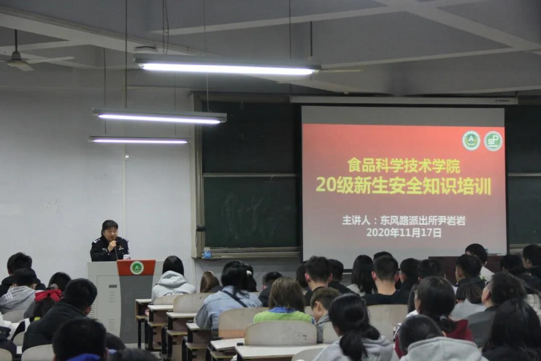 于文化路校区桃李园学生公寓桃西楼204教室组织开展安全知识培训,特邀东风路派出所民警尹岩岩宣讲相关安全知识,2020级全体学生参加培训。