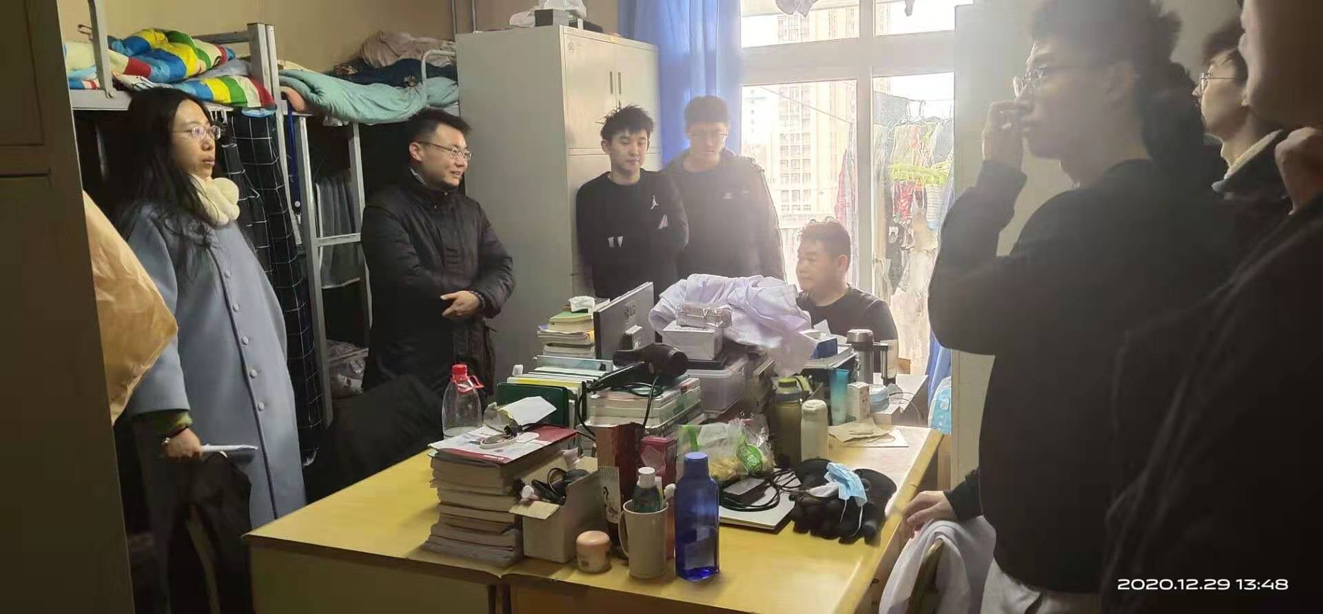 12月22日,路平前往桃李园学生公寓7号楼男生公寓,与每个宿舍的同学进行了交流,着重强调宿舍安全的重要性,询问同学们生活上存在的问题,并就具体问题提出了有效的建议。陈翔前往校区5号楼、12号楼学生宿舍,询问了同学们的学习情况,鼓励同学们积极学习,并希望同学们在学习之余多掌握一些技能,注重对实践能力的培养。12月29日,路平和陈翔共同前往第二生活区,在了解到同学们的基本情况后,他们希望同学们充分利用第二生活区的体育设施,注意锻炼身体,适当开窗通风,养成良好的生活习惯。