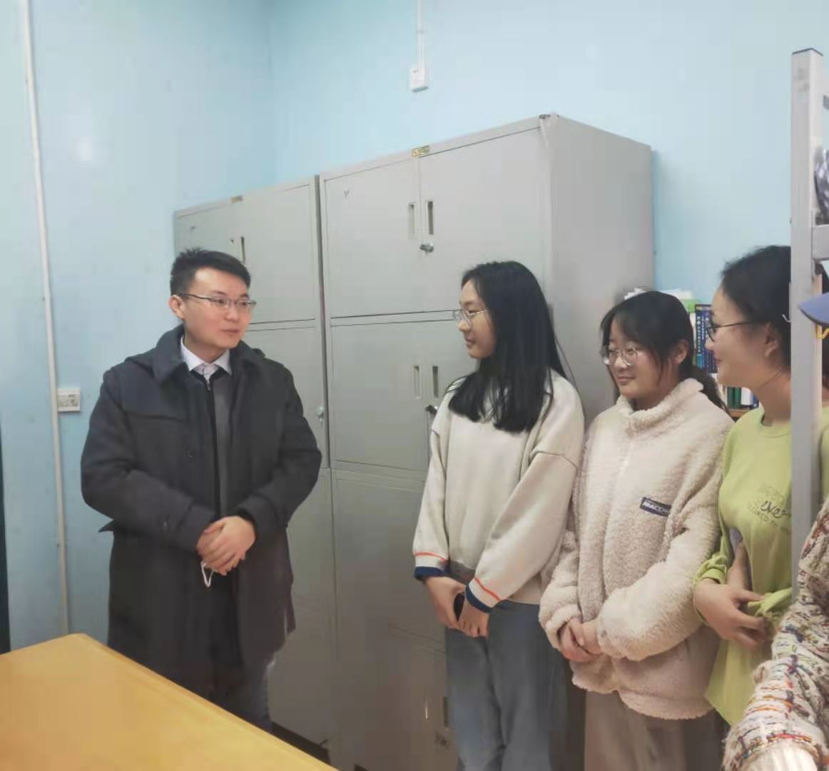 团委书记路平、团委副书记陈翔多次走进学生宿舍,与同学们沟通交流,了解同学们学习与生活情况。