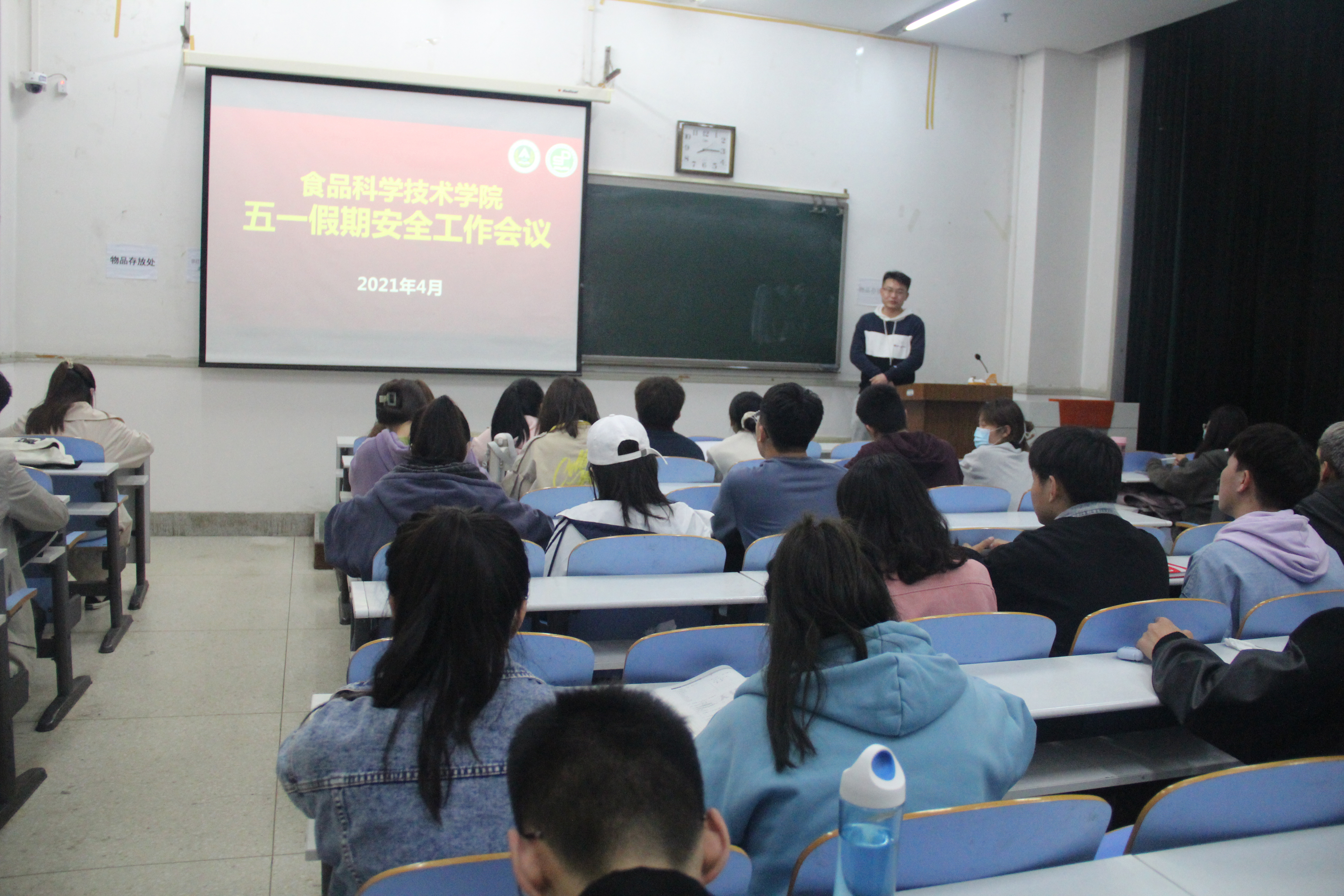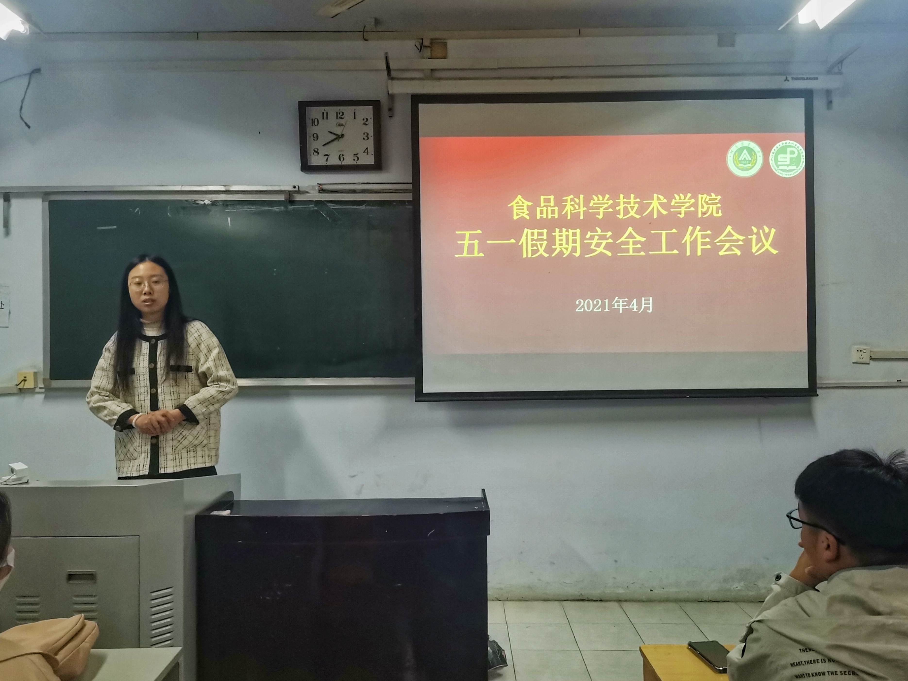 于文化路校区召开五一假期安全工作会议,院团委书记路平、院党委组织员王凡、院团委副书记陈翔、院辅导员许龙、秦可梦出席会议,研究生、本科生各年级班级负责人参加会议。