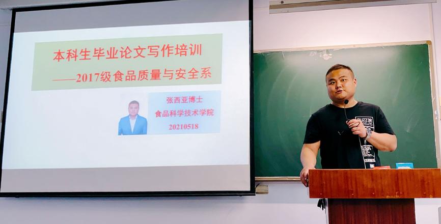 2021年5月18日晚,食品质量安全系张西亚博士在推广楼408为本科生毕业生作论文写作培训。