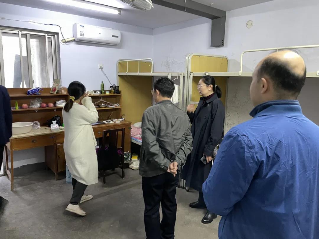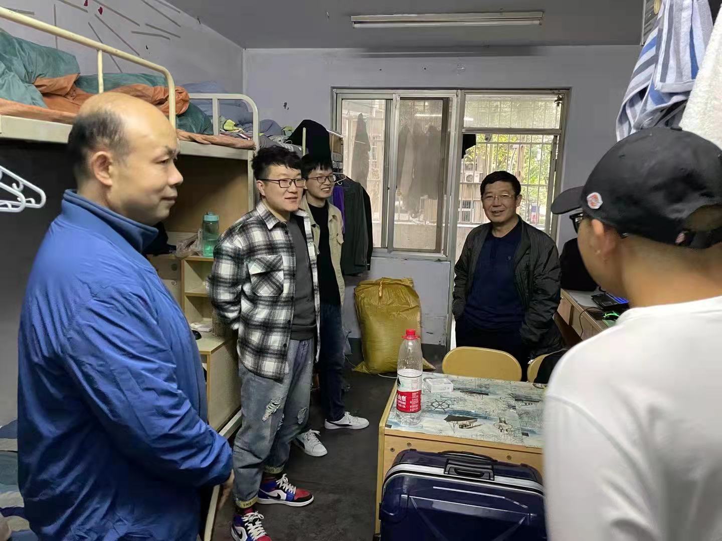 党委书记赵改名、院长黄现青、院党委副书记李蓓蓓、副院长张剑、辅导员张金龙、班主任余小领走访研究生新生宿舍。