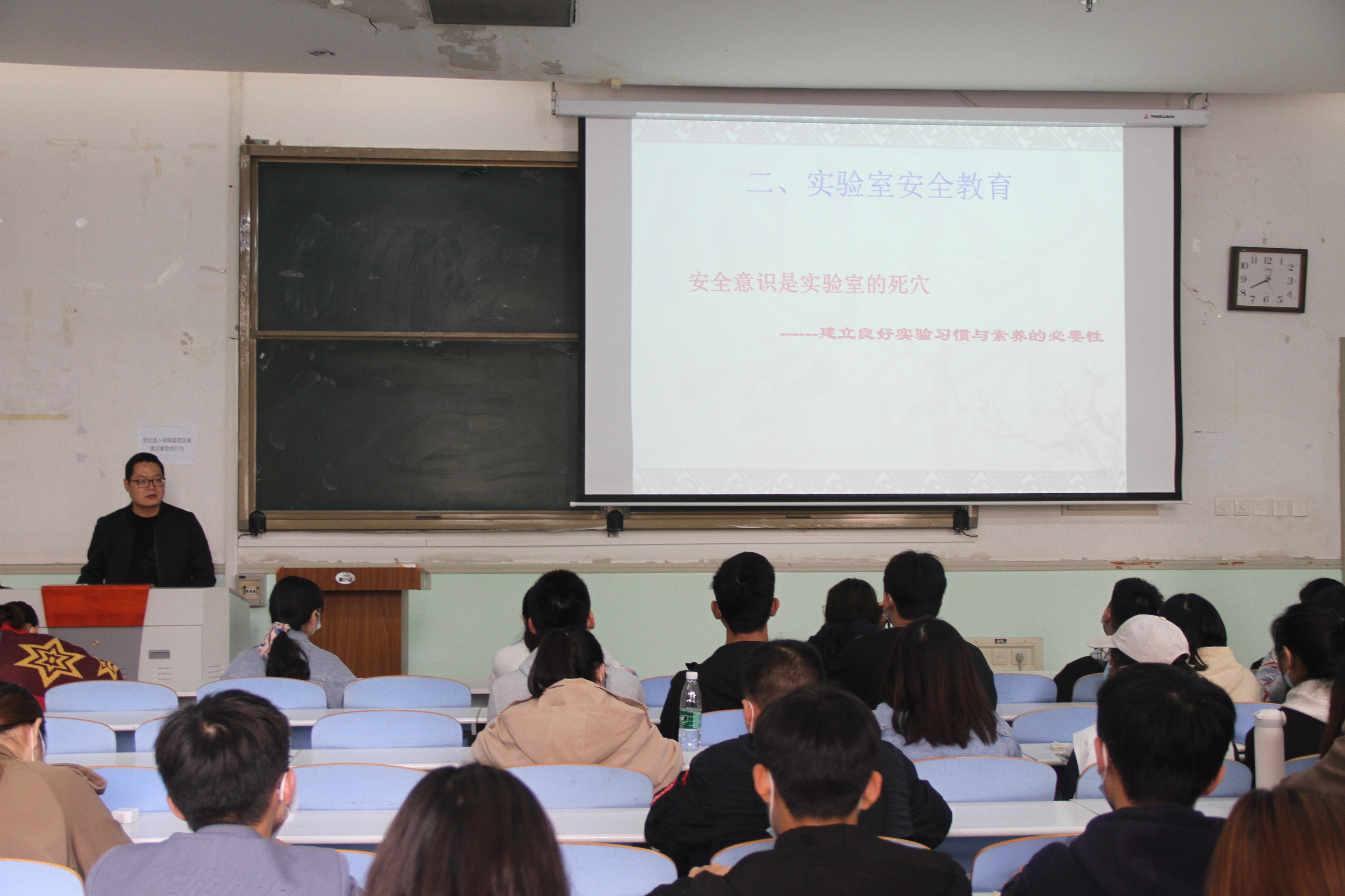 乔明武对实验室基本情况、工作守则、设备的管理与使用以及仪器的损坏与赔偿等实验室相关制度进行了简单的介绍,他表示,希望同学们认真学习实验室的规章制度,严格遵守各项规定。他以国内各大高校及我校的真实实验室事故案例为切入点,向同学们强调了拥有安全意识的重要性,并提醒同学们严格按照操作规程进行作业,预防实验室安全事故的发生。同时,他以案例的形式,从水、电、火、化学四个方面讲解了实验室常见的安全问题,并提出了相应的解决措施,他指出,懒惰是实验室不良习惯的根源,希望同学们养成良好的习惯,确保个人和实验室的安全。