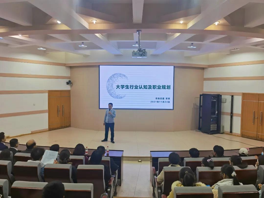 于文化路校区第一报告厅开展大学生行业认知及职业规划报告会,特邀洛阳正大集团市场总监安民出席会议,21级部分学生参加会议。