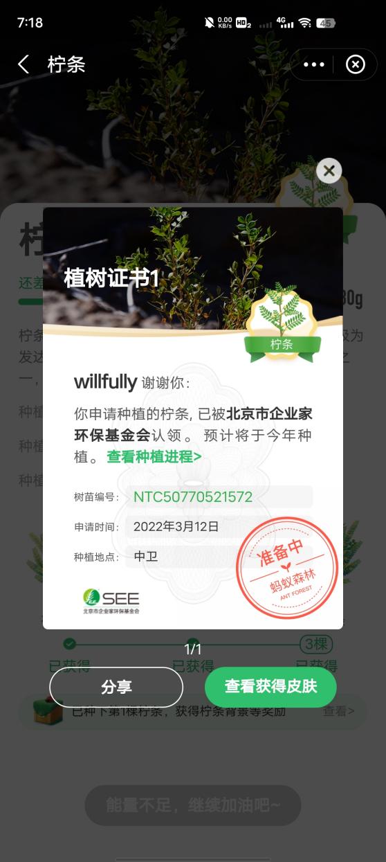 考虑到当下疫情防控形式和地方疫情防控要求,决定取消线下植树活动,依托蚂蚁森林平台,采用线上的方式开展植树节系列活动。同学们的热情并没有因为活动形式的改变而减弱,大家通过绿色出行积累“绿色能量”种起了一颗颗虚拟树,并上传自己的植树截图。同学们纷纷表示,通过这样的方式开展活动,既遵守了疫情防控要求,又践行了低碳生活理念,线上植树让植树节有了不同的意义。