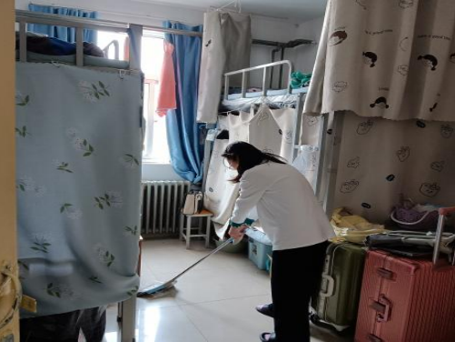 开展五一宿舍大扫除活动。