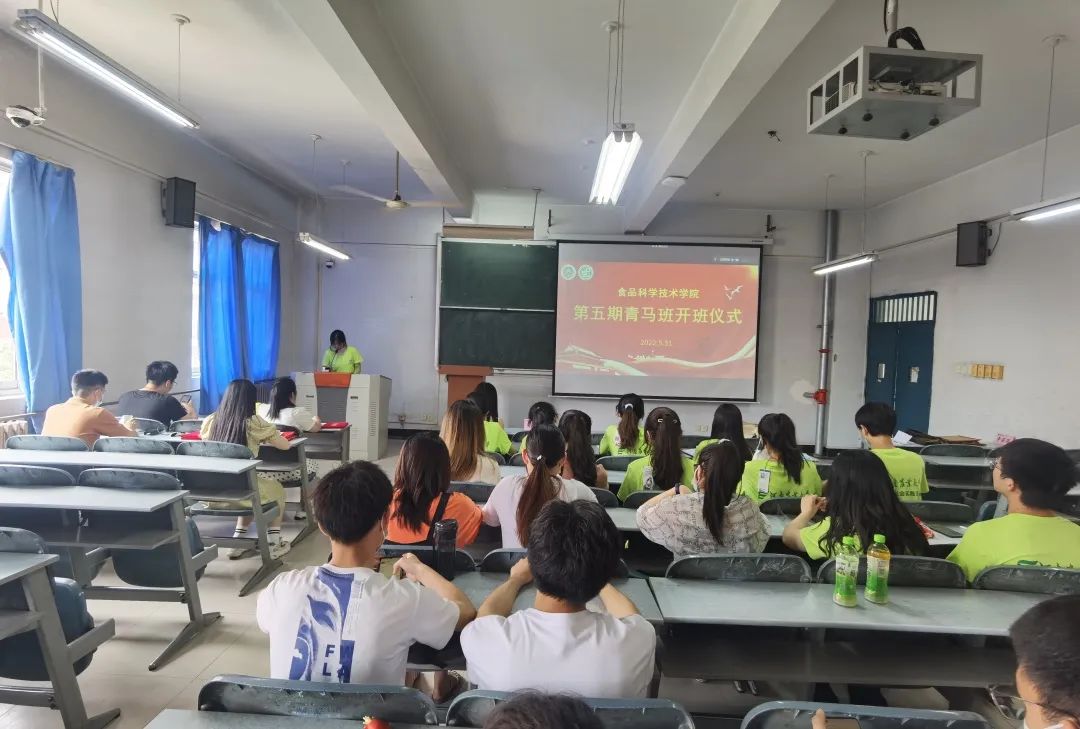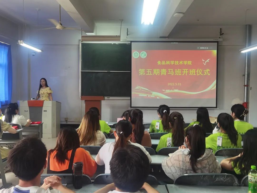 青马班优秀学员的决定》及学院第四期青马培训班顺利结业学员名单。路平,张金龙依次为优秀学员颁发荣誉证书,为第四期青马班毕业学员代表颁发结业证书并扣上“青马培训第一粒扣子”。第四期青马班支书朱亚威对第四期青马班培训学习成果进行了总结汇报。她希望广大青马班成员要不牢记党的要求,为党的伟大事业奉献青春。张金龙宣读了第五期青马培训班学员及班委名单。路平为新一期青马班学员授旗。第五期青马班支书陈曦代表第五期青马班全体学员做出承诺,将进一步坚定理想信念,努力成为马克思主义的拥护者,实践者和传播者。