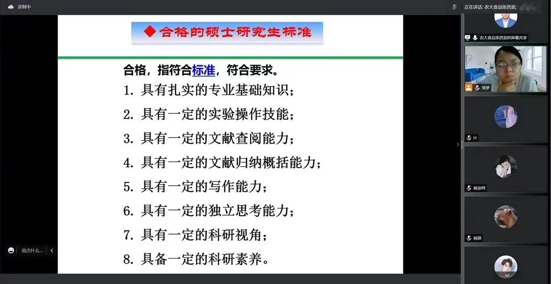 (通讯员 吴贤锟)为给学生提供全面的考研指导,增强学生信心。7月20日,食安系副主任张西亚老师为食品质量与安全专业进行考研指导,该专业19级全体学生参加。