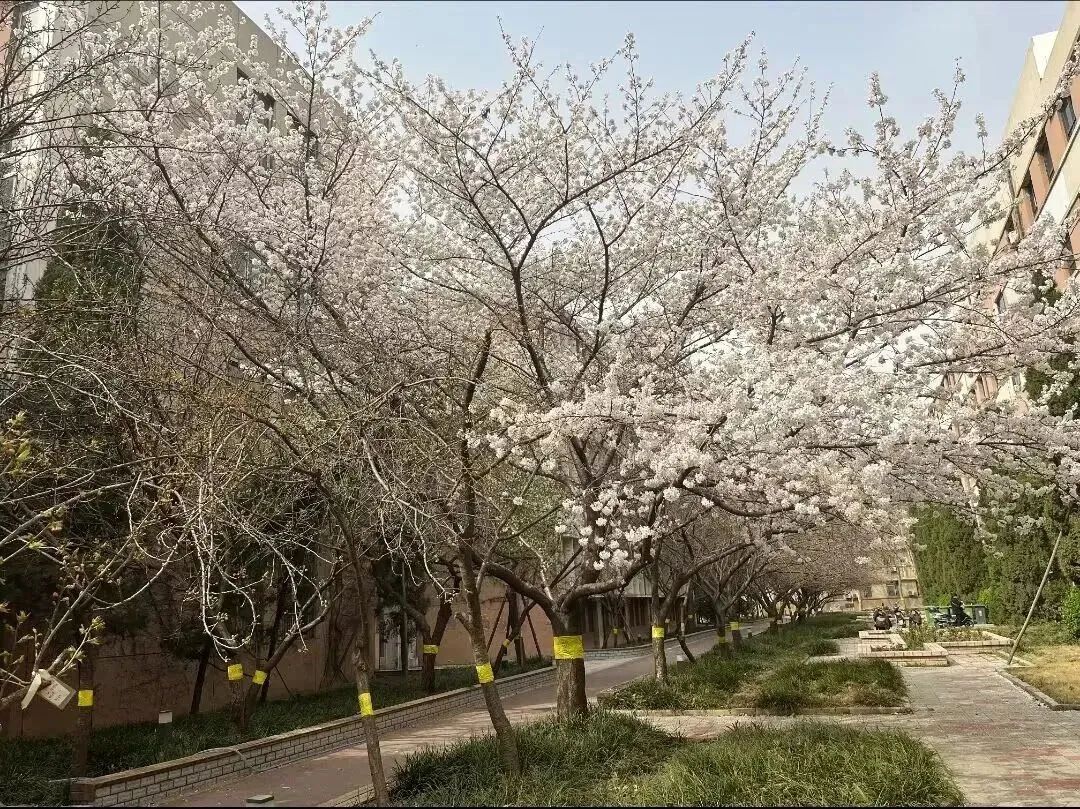 学生沿小路对校园内的植物进行详细讲解和鉴赏,她给同学们普及了各类植物生长的具体环境和各自开花的时节与特点,从玉兰花的各式各样到紫荆花的开满枝干,再到含苞待放的牡丹。蓦然回首,发现三号楼前的樱花小道成了校园内最靓丽的风景线。