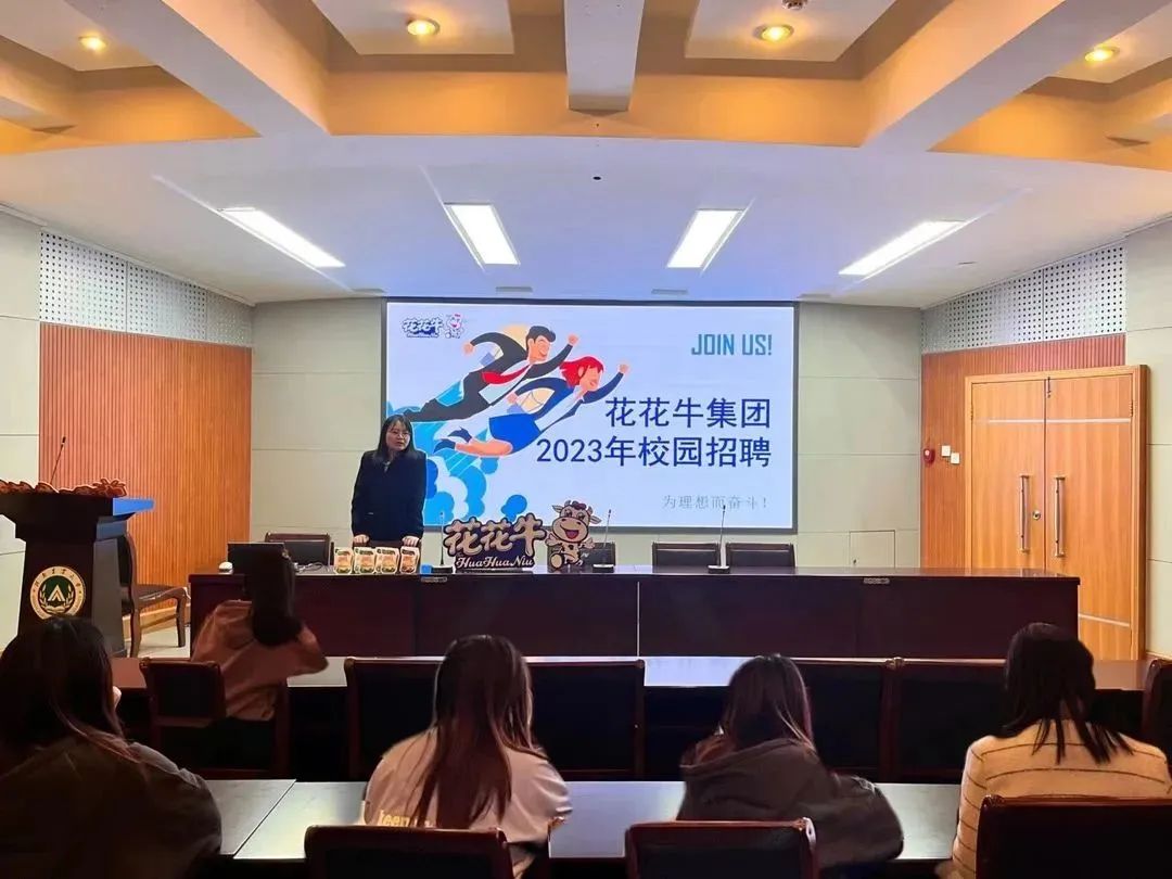 于文化路校区一百人报告厅组织召开花花牛2023校园招聘宣讲会,花花牛招聘专员党雅丽、贾萱出席会议,百合小说