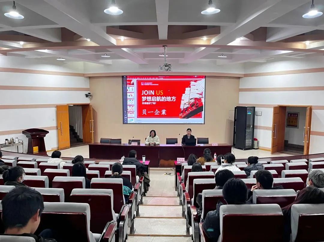 于文化路校区三百人报告厅召开山东贝一企业2023届校园招聘会。山东贝一企业相关负责人出席会议,百合小说