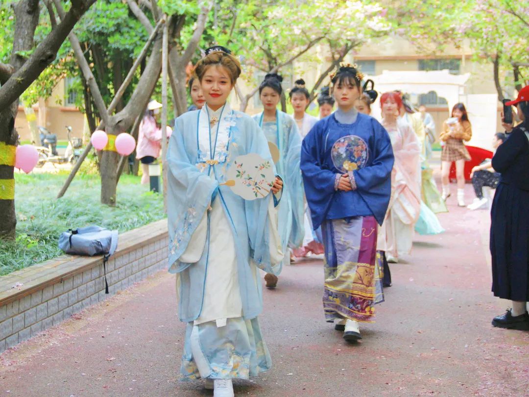 开场节目是由院学生会文体部带来的古装走秀和古典舞,演员身着仙气飘飘的汉服,出演着优美动人的舞姿,展现了当代大学生蓬勃向上的青春活力。樱花与汉服的巧妙碰撞,让人间的四月天充满独特风采。