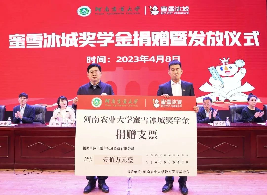仪式现场,蜜雪集团向学校捐赠100万元人民币,设立百合小说