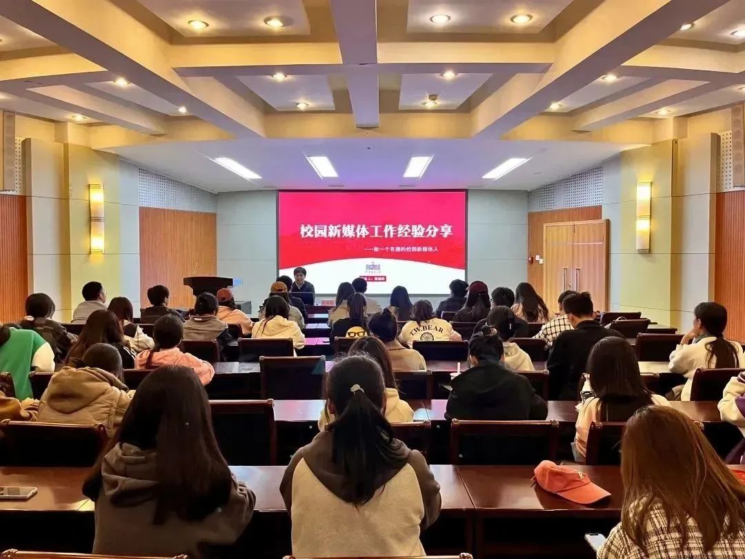 董瑞林以《校园新媒体工作经验分享——做一个有趣的校园新媒体人》为主题,结合目前媒体融合时代的形势,从校园新媒体定位、运营特点与方法论、做成熟媒体人、意外的收获四个方面向同学们分享了宣传经验和方法。他根据微信公众号、抖音、小红书和微博的特点详细剖析了不同媒体的运营策略,并引用国务院总理李强的讲话强调了调查研究的重要性。他表示,优秀的新媒体工作者应该具有文案策划能力、组织能力、担当精神和创新精神。最后,他真诚寄语同学们,要找准定位,发挥好校园新媒体的优势,链接社会资源,讲好青春故事。