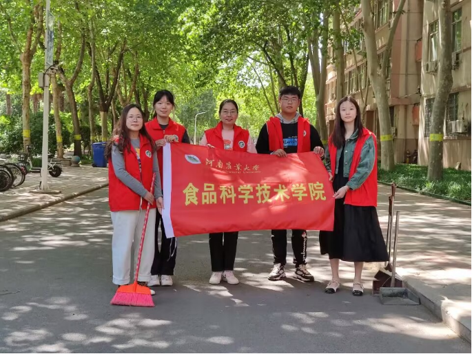 开展“唱响劳动之歌,铸魂‘食’代新人”劳动节主题活动。团委党建成员、新媒体成员、学生会成员、四大社团共同参与此次活动,共计40余人。院党委副书记李蓓蓓全程参与,带领志愿者们一起清扫校园、摆放车辆、打扫卫生。