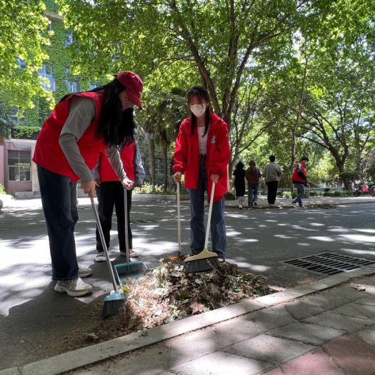 下午,志愿者们沿着道路来到行政楼边,身着红马甲,有的弯腰拾起地上的树叶,有的拿着扫帚簸箕清理堆积的柳絮。在劳动过程,即使需要长久地弯腰清扫,同学们也乐此不疲,用心清理校园里每一片角落,一道道靓丽的风景线,打造出整洁有序的环境,勾勒出农大学子的精神风采。