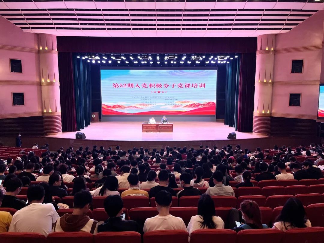 和学校其他八个学院于文化路校区千人大礼堂联合开展第52期入党积极分子培训班工作。