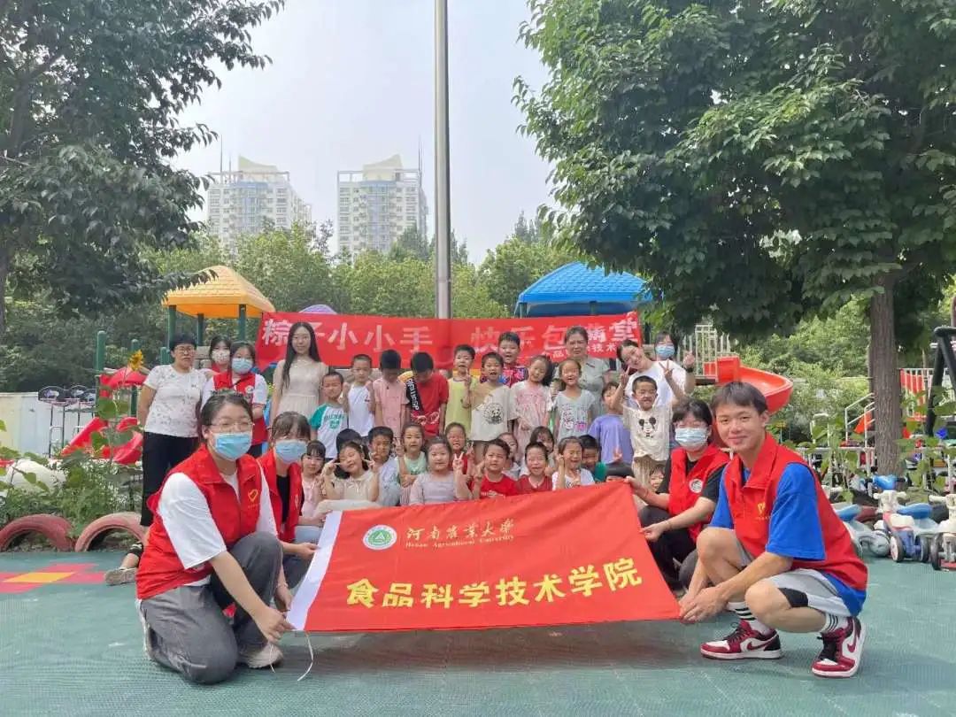 附属幼儿园开展“粽子小小手,快乐包满堂”活动,部分同学参加活动。