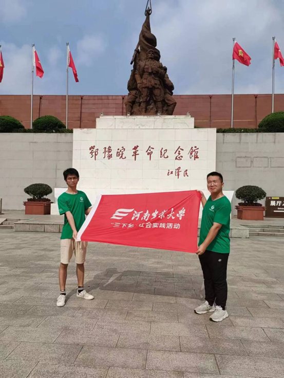 由邓智民、刘康宇组成的第二小队前往信阳鄂豫皖革命纪念馆,进行党史的实践学习。通过在纪念馆中老物件,了解了大别山革命老区所发生的种种英雄事迹,学习革命先烈无畏艰难,不惧炮火,为共产主义事业付出青春年华和宝贵生命的崇高品质。