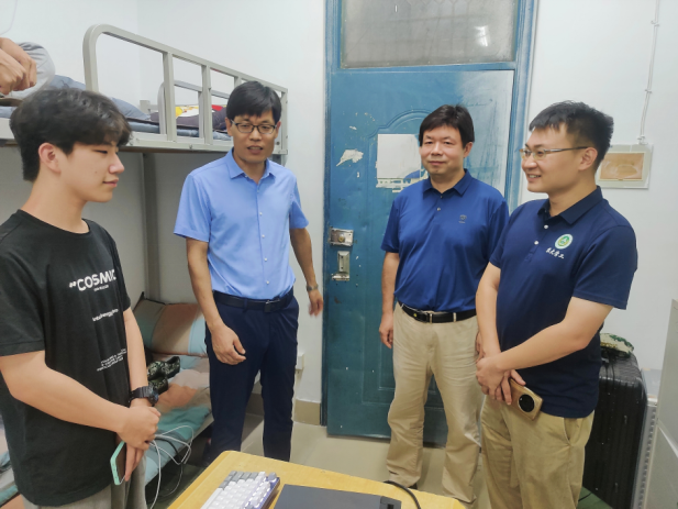 新生到校情况,帮助新生更快适应校园生活,9月15日下午,院长黄现青、院党委副书记李蓓蓓、副院长张剑、谢新华、院团委书记路平、学院办公室主任徐丽娜、院党委组织员陈翔和23级全体班主任共同走访本科新生和研究生宿舍,为23级新生送上温暖与祝福。