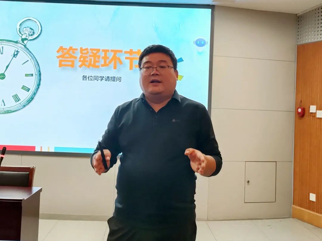 互动问答环节,同学们就住宿条件、校招政策、工作时间等多个方面提出疑问,崔经理一一解答同学们的疑惑,并耐心地与同学们进行了工作经验的分享与交流。
