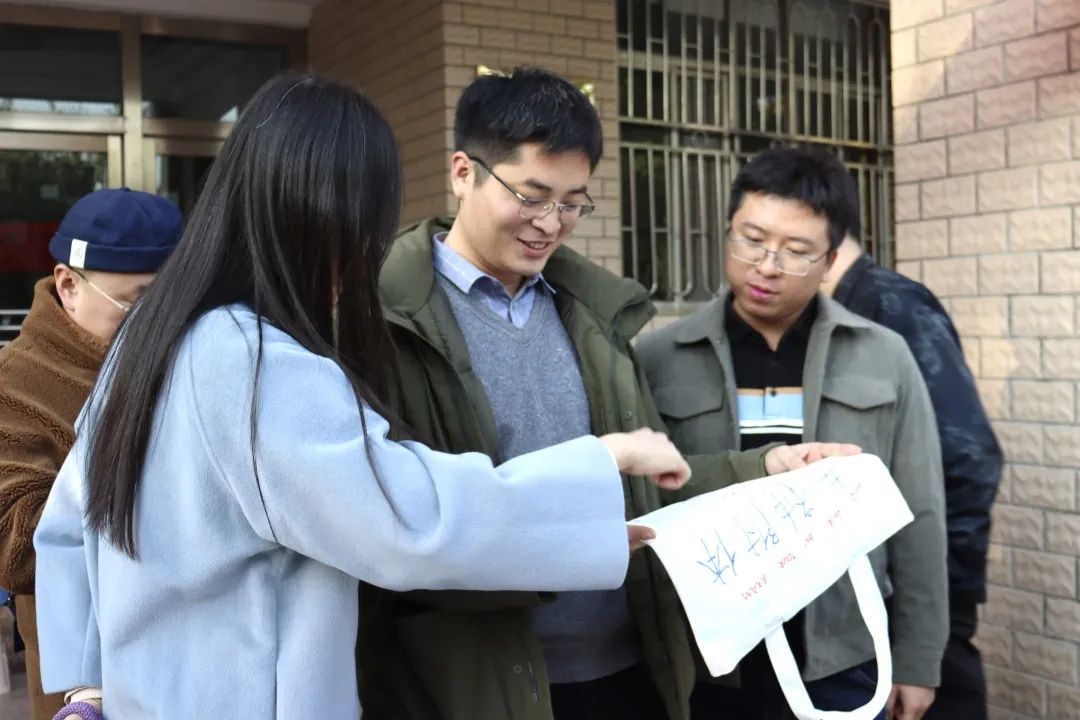 活动形式多样,意在为毕业生送温暖。活动现场准备了两米长的“定胜”糕,寓意一定胜利高中,让毕业生们品尝美味的蛋糕,并进行了丰富多彩的心理减压小游戏:“无敌幸运轮”“乘风破浪”“超越自我”“鱼跃龙门”“前程万里”“一举夺魁”,毕业生们通过挑战自我、轻松减压,舒缓紧张的心情;志愿者为毕业生送上考研上岸专属礼物-精美帆布包,帆布包上的图案是来自研究生和低年级同学亲手绘制,绘满了对毕业生的祝福;身穿旗袍的志愿者为毕业生送上学院精心准备的“旗开得胜”小礼物。