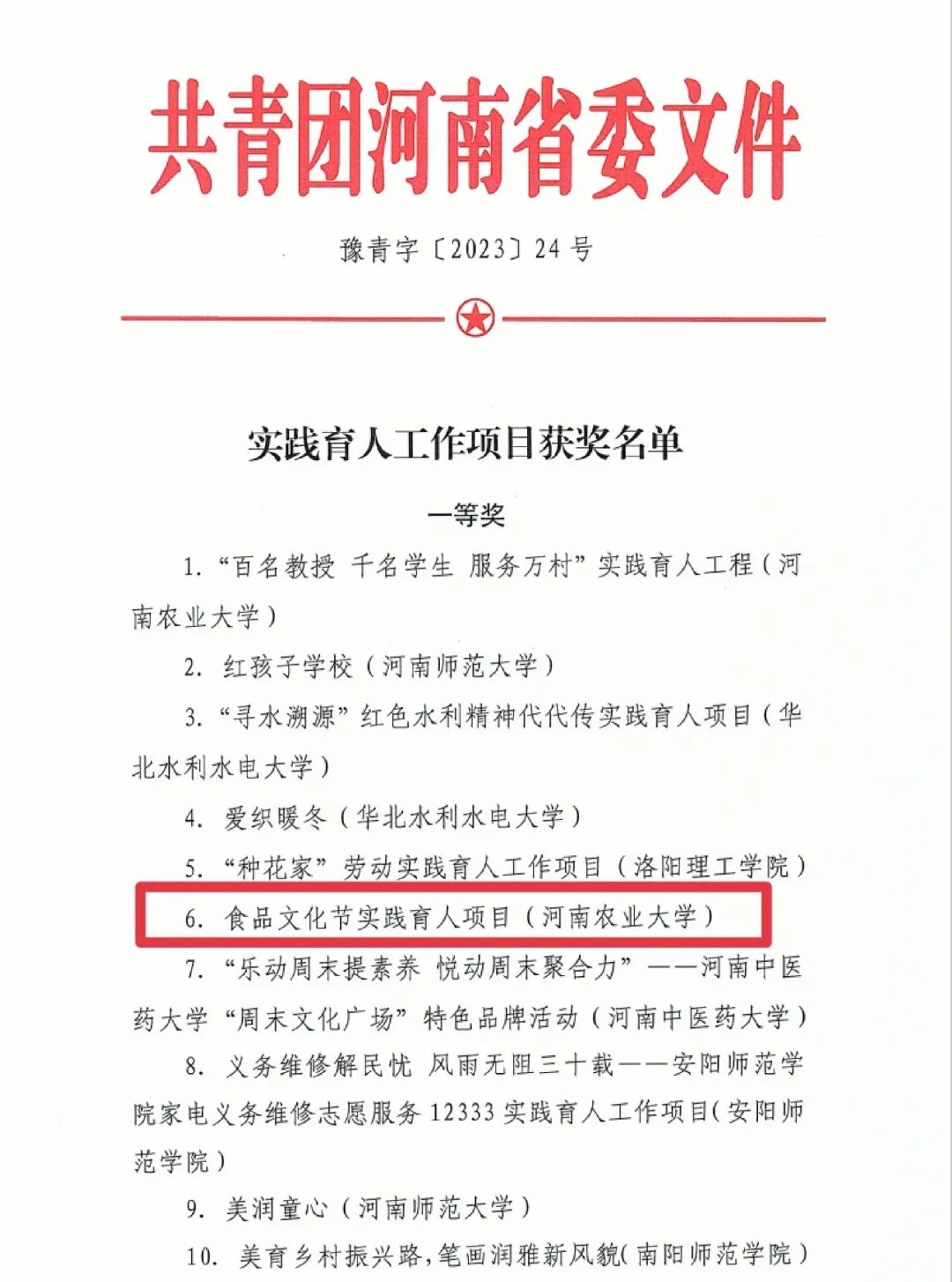 食品文化节实践育人项目 一等奖