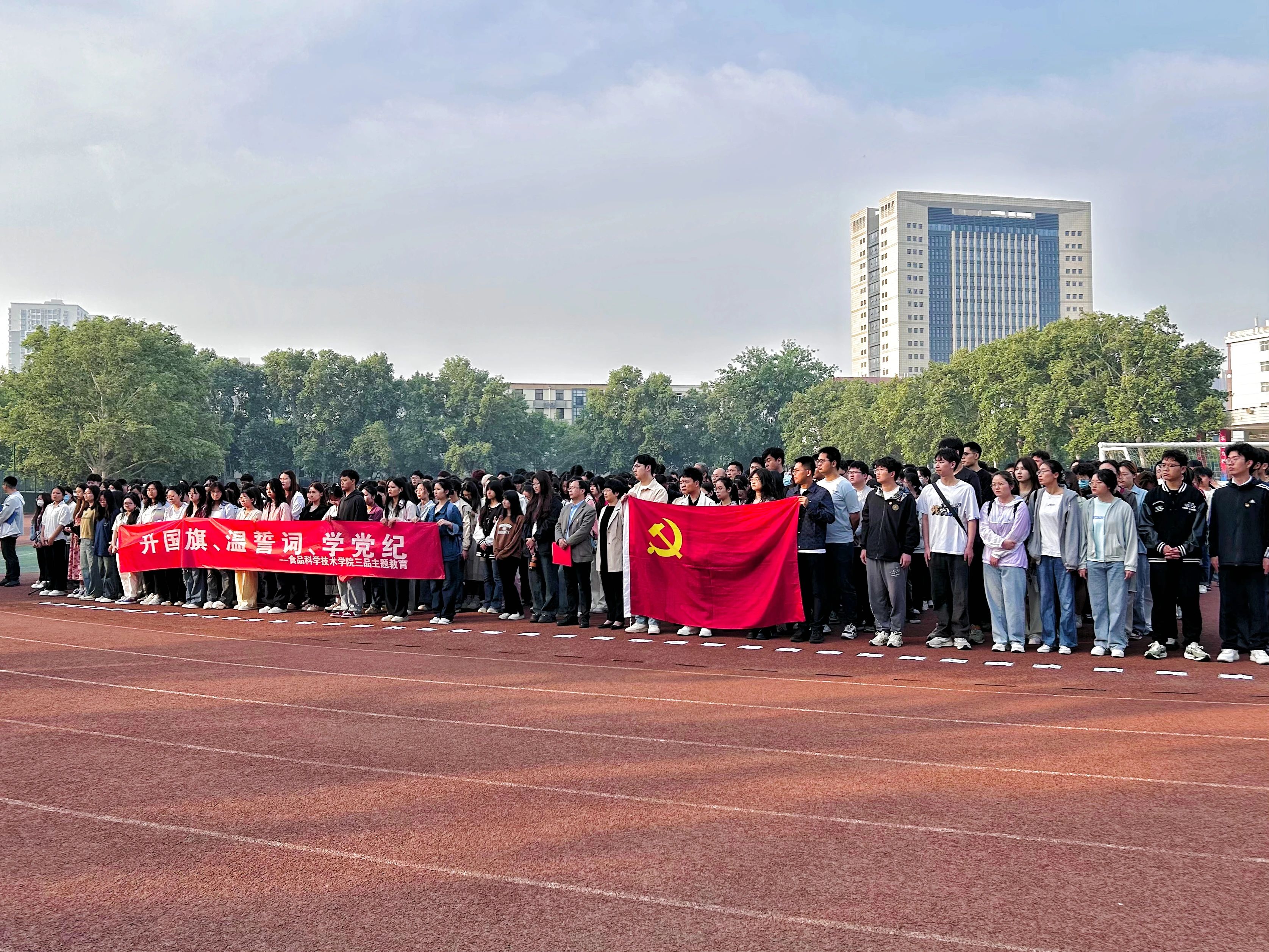 于文化路校区举行“升国旗,温誓词,学党纪”主题升旗仪式暨党日活动,院党委书记赵改名,副院长张剑和全体党员及师生参加活动,此次活动由院党委副书记李蓓蓓主持。