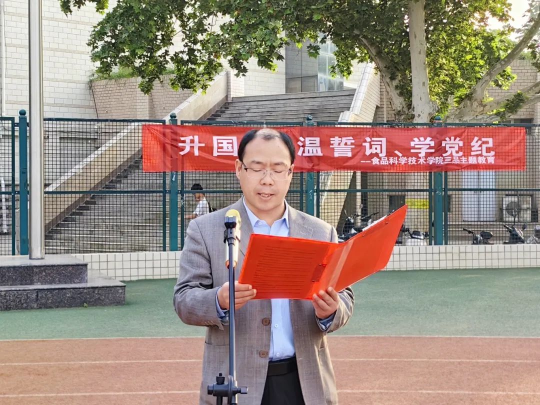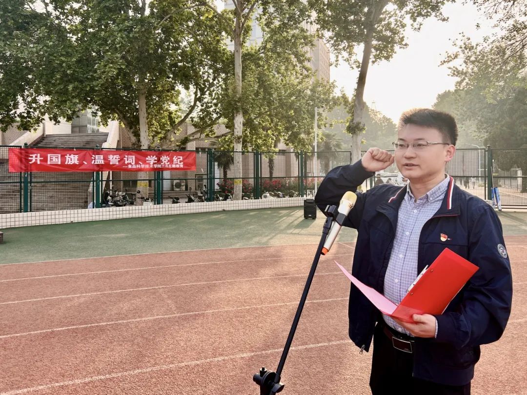 院党委书记赵改名指出党纪是党的生命线,是维护党的团结统一,保持党的先进性和纯洁性的重要保障。他希望同学们牢记自己的初心和使命,保持对党的忠诚,做一名合格的社会主义建设者和接班人。严守党的纪律和规矩,做到心中有党,心中有责,心中有戒。他表示,同学们要共同努力,将这份誓言和担当转化为实际行动,为食品学院的发展谱写新的华章,为学校的建设作出新的贡献。