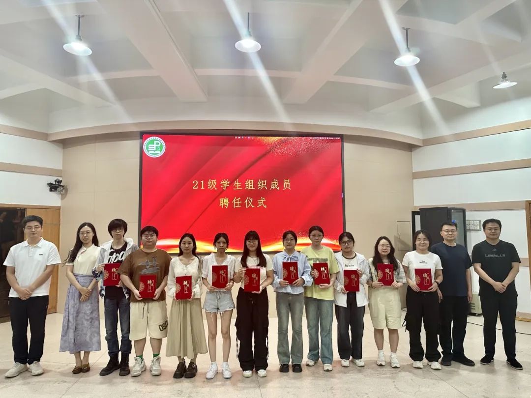 老师们为21级学生组织负责人颁发聘书,以表示对他们过去一年工作的肯定和鼓励,并进行合影留念。