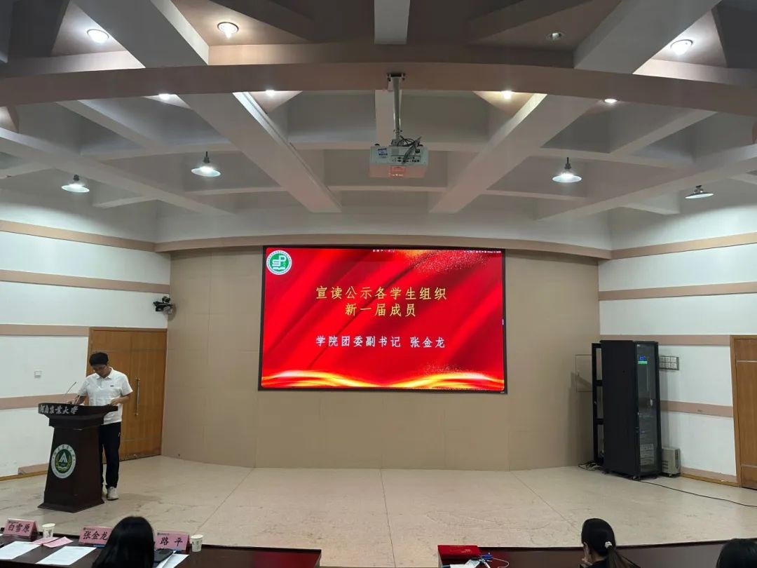 张金龙宣读各学生组织新一届成员名单。换届大会在校歌《绿色颂》中圆满结束。
