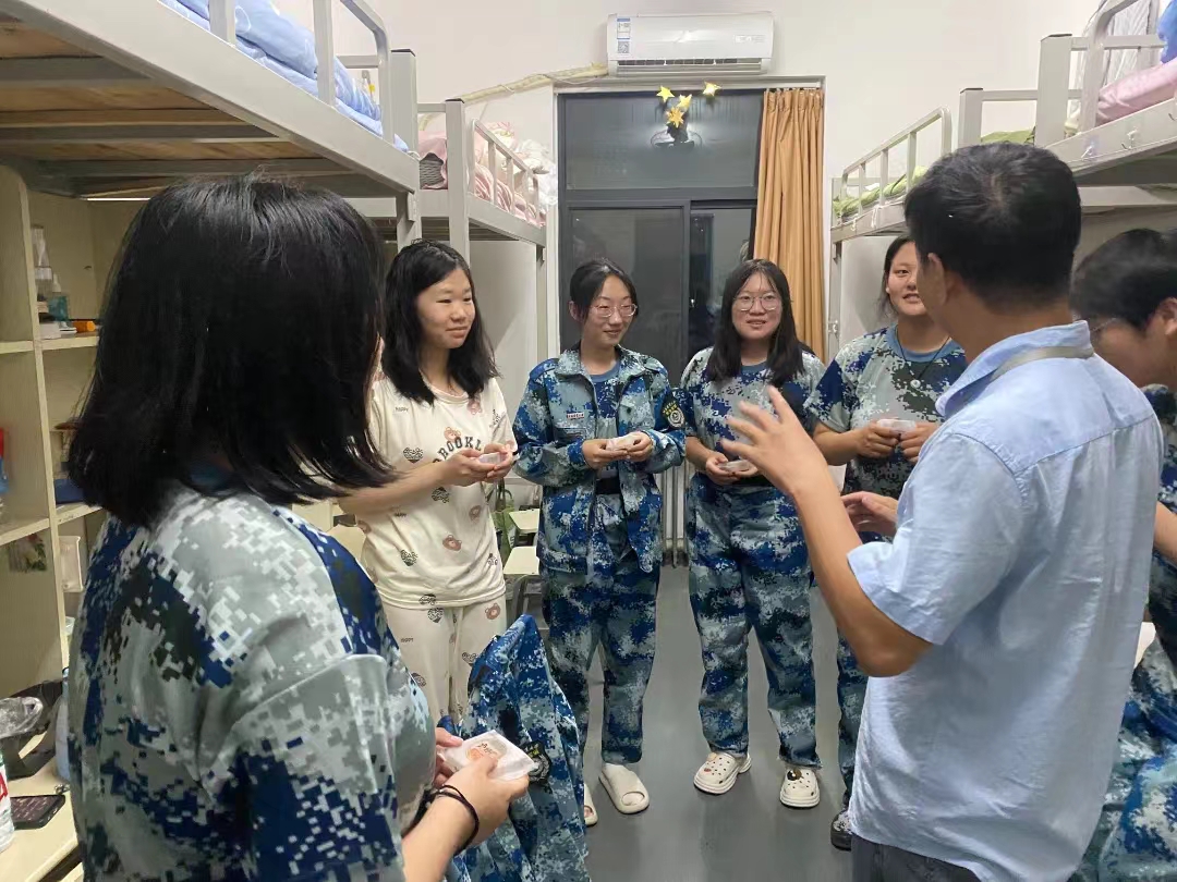 在走访过程中,各班班主任一边分发月饼,一边为新生送去诚挚的中秋节日问候。他们询问了新生们在军训中的感受,鼓励新生要坚强勇敢,战胜困难。同时,他们也提醒新生要注意身体,不要过度劳累,要保持良好的状态。新生们接过月饼,感受到了浓浓的节日氛围和学院的关怀,他们纷纷表示,班主任的关心与鼓励让他们倍感温暖,也让他们更加珍惜这次军训的机会,努力锻炼自己,为学院争光。