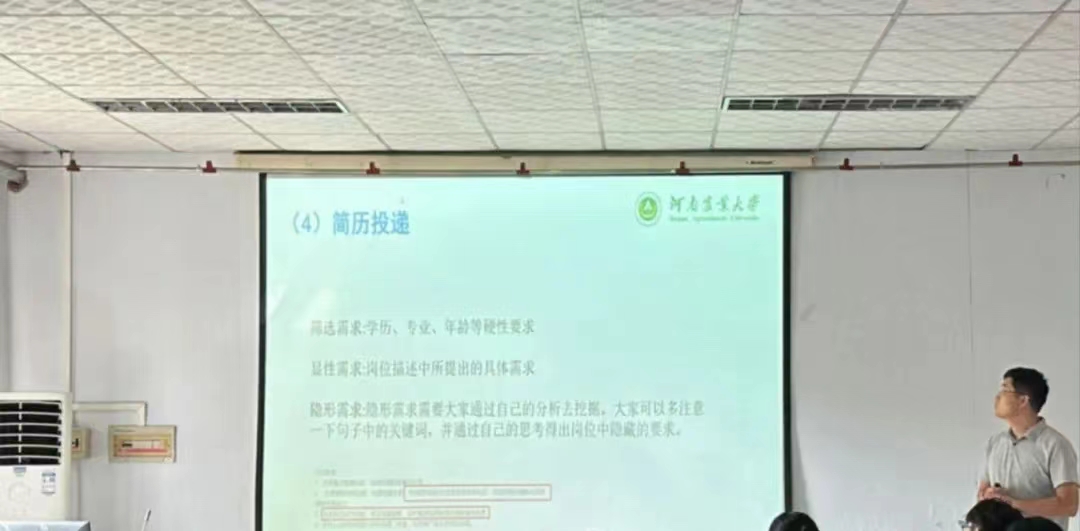 在简历投递方面,他提醒毕业生注意市场行情的收集,努力使自己的简历与求职岗位的需求相匹配,尽力突出自己的优点。他还详细介绍了简历基本信息的填写要点,包括个人荣誉、等级证书等,并强调了简历完整、真实的重要性。