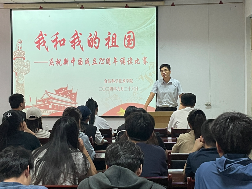 于9月26日下午在17号楼405报告厅开展“我和我的祖国——庆祝新中国成立 75 周年诵读比赛”,24级研究生辅导员张金龙出席本次活动。