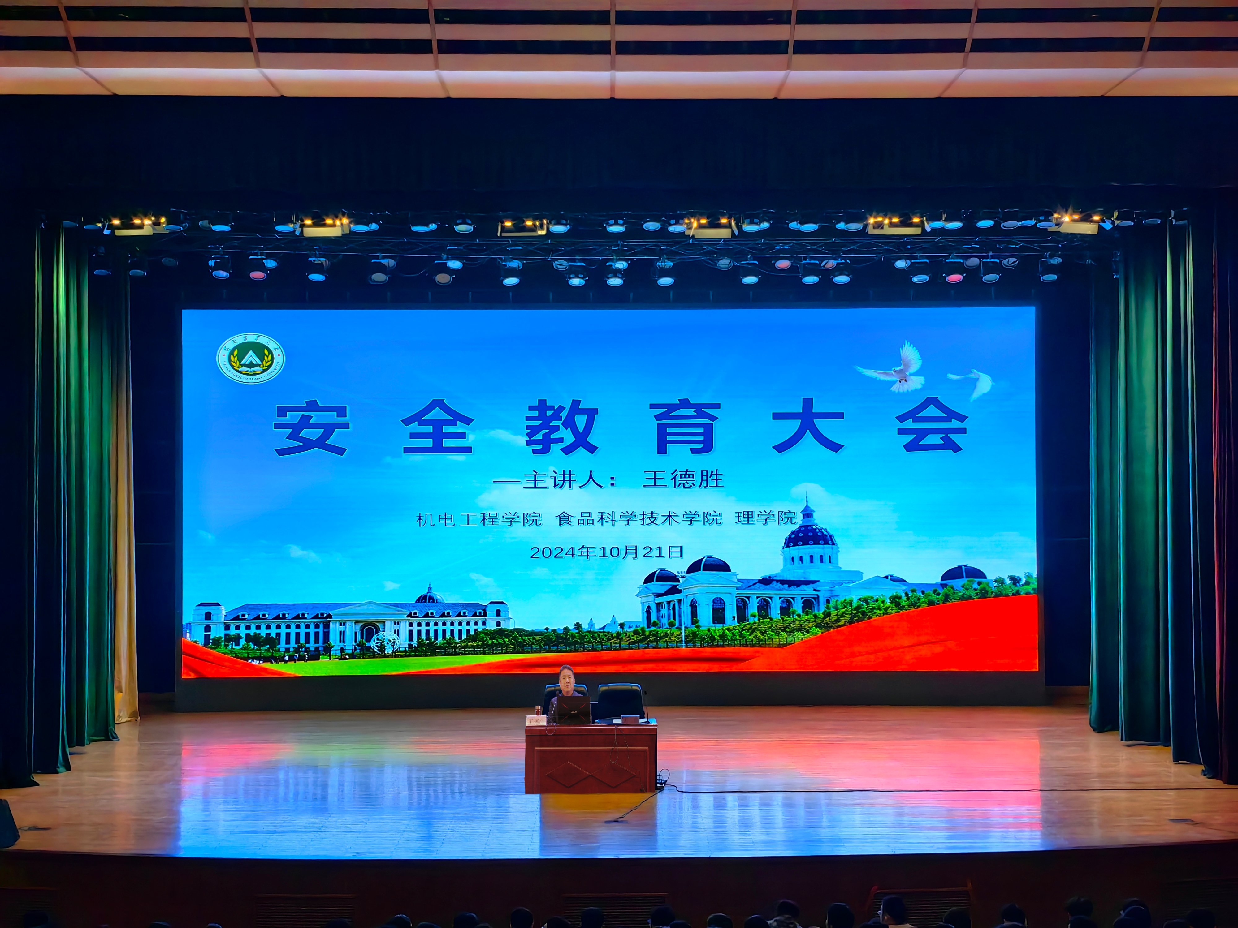 与机电工程学院、理学院于文化路校区千人大礼堂联合召开新生安全教育大会。2024级全体新生及各级生保委员参加会议,本次大会由校保卫处副处长王德胜主讲。
