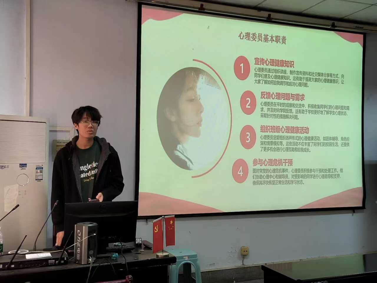 随后,张金龙对心理委员提出了具体要求,强调要将“做什么”转变为“如何做”,让老师和同学看到成效,真正做到解决班级问题,落实心理工作。路平则强调了心理委员要做好“细”、“暖”、“全”、“新”,即仔细观察,暖心帮助,全方位关注个人情况,尝试新方法带动班级建设,共同营造和谐的班级氛围。