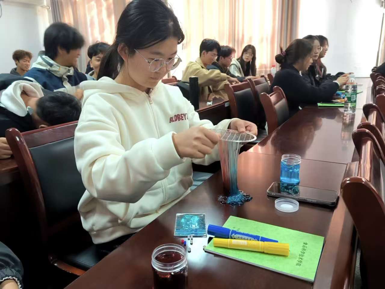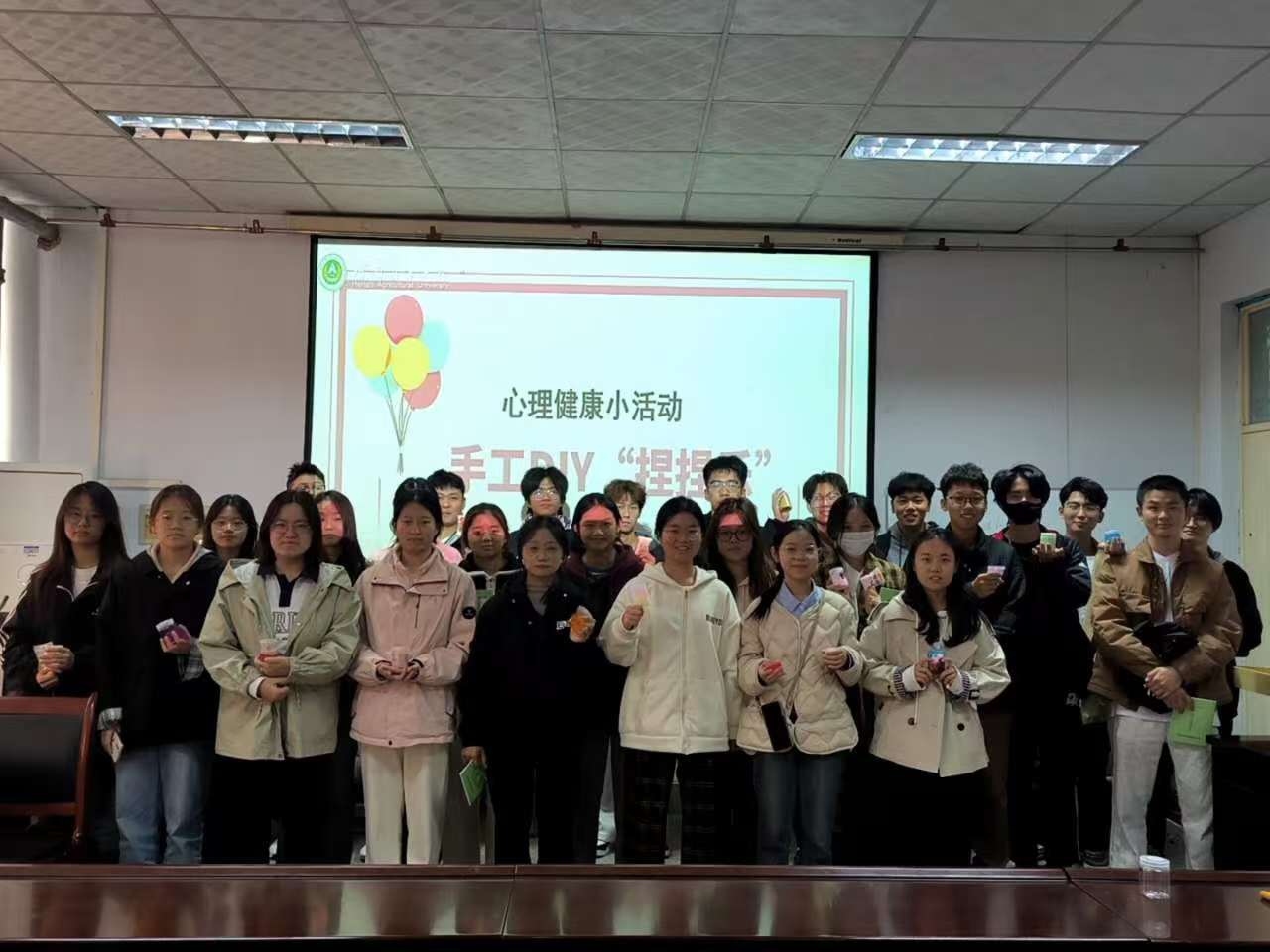 最后,团委心理部成员组织进行了手工DIY捏捏乐活动。同学们积极参与其中,不仅拉近了各班心理委员之间的距离,也鼓励他们为心理工作建言献策。